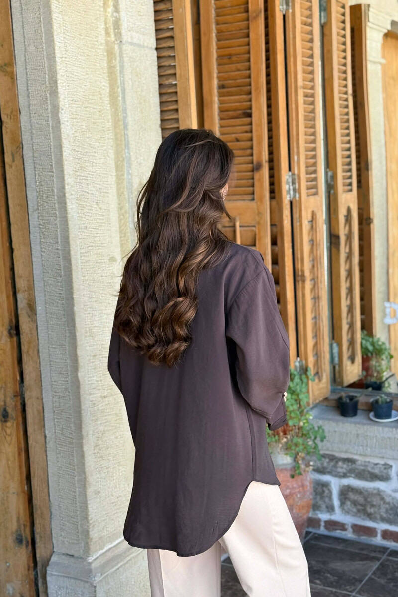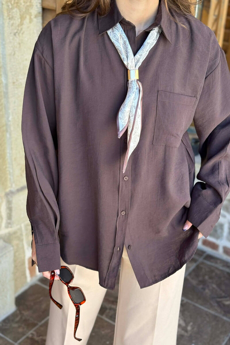 KEMISHE NJE NGJYRESHE ME DETAJIN E SHALLIT PER FEMRA NE NGJYRE KAFE