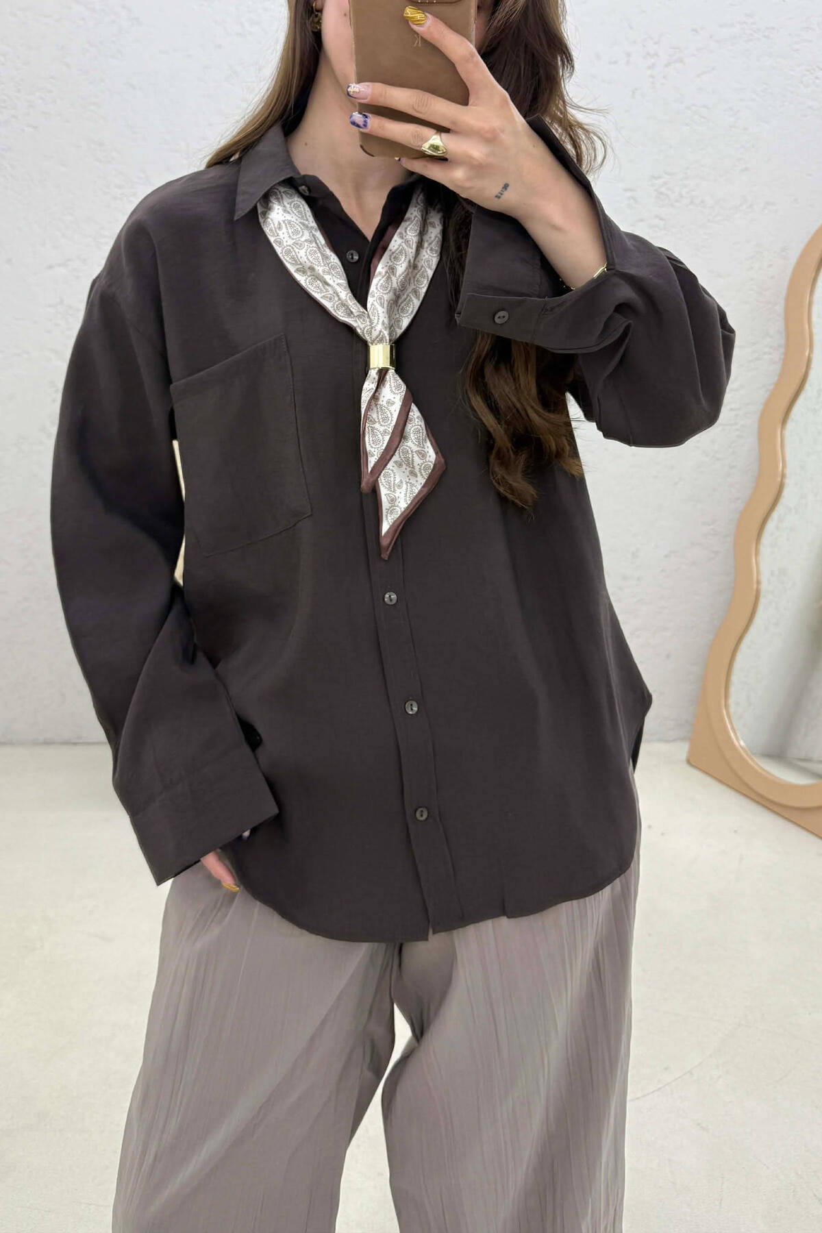 ONE COLOR SCARF DETAIL WOMAN SHIRT BROWN/KAFE