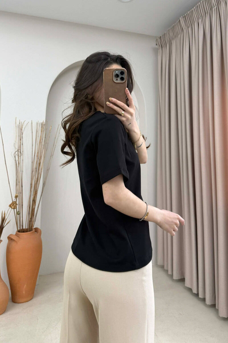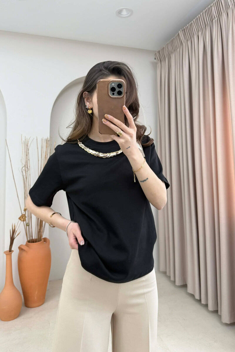 ONE COLOR NECK DETAIL WOMAN T-SHIRT BLACK/ E ZEZE