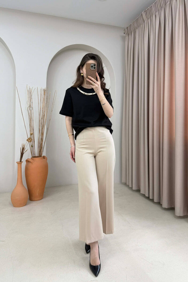 ONE COLOR NECK DETAIL WOMAN T-SHIRT CREAM/KREM