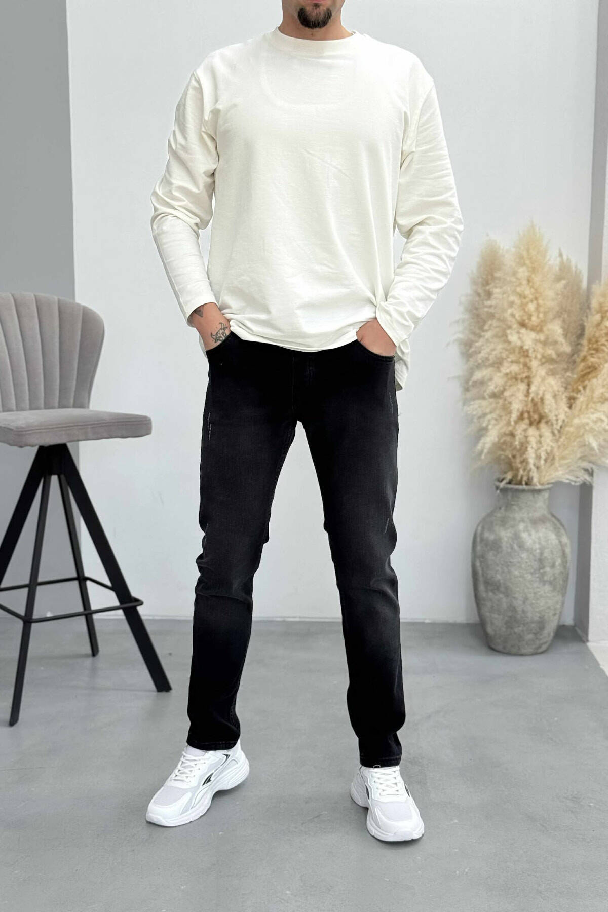 ONE COLOR SCRATCHES MEN JEANS BLACK/ E ZEZE