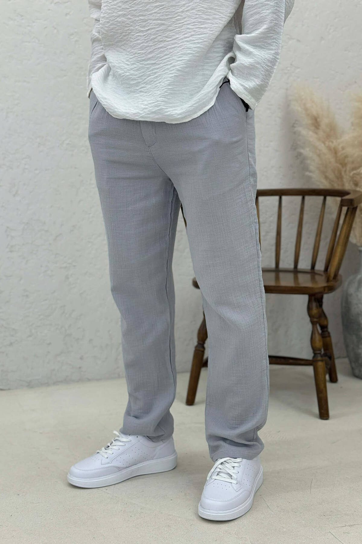 ONE COLOR SEMI ELASTIC WAIST MEN PANTS GREY/GRI