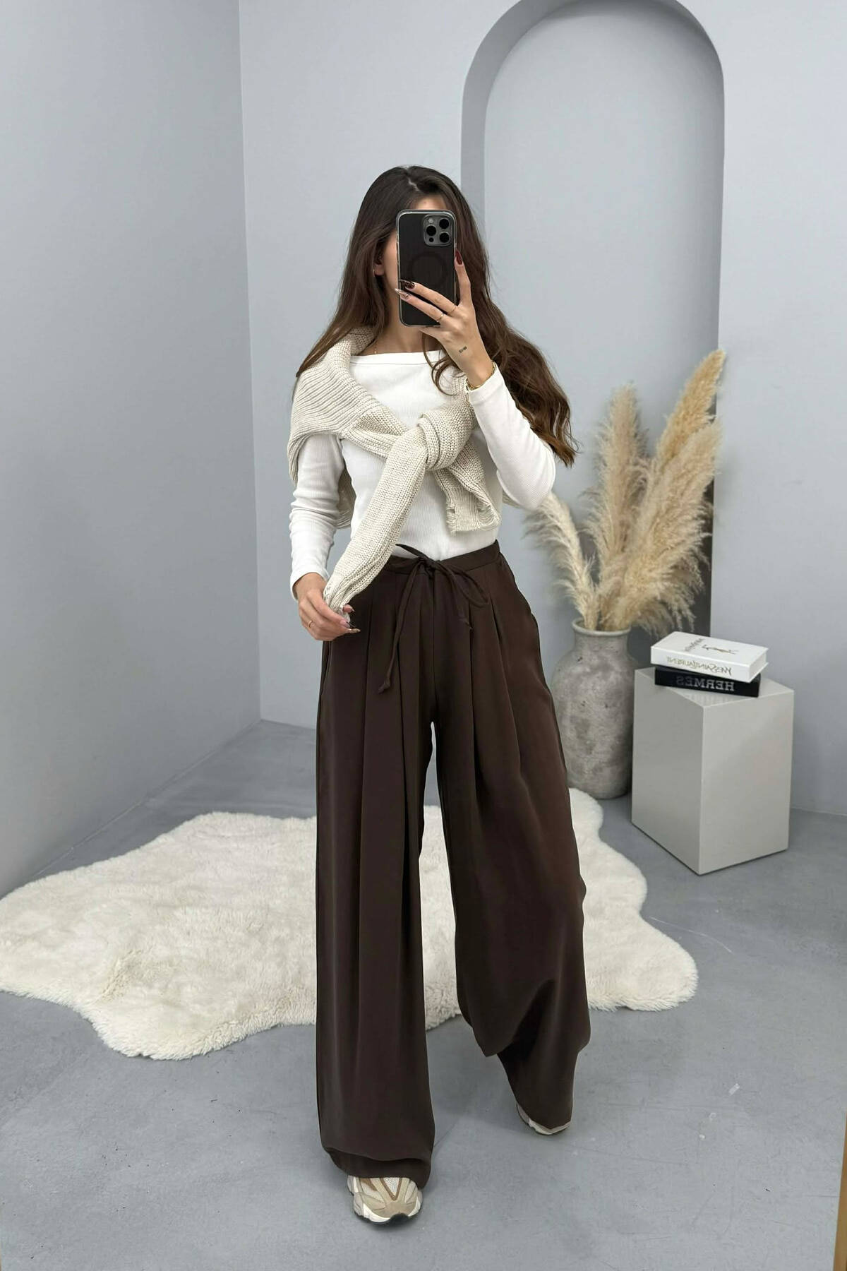 ONE COLOR BELT DETAIL WOMAN TROUSERS BROWN/KAFE
