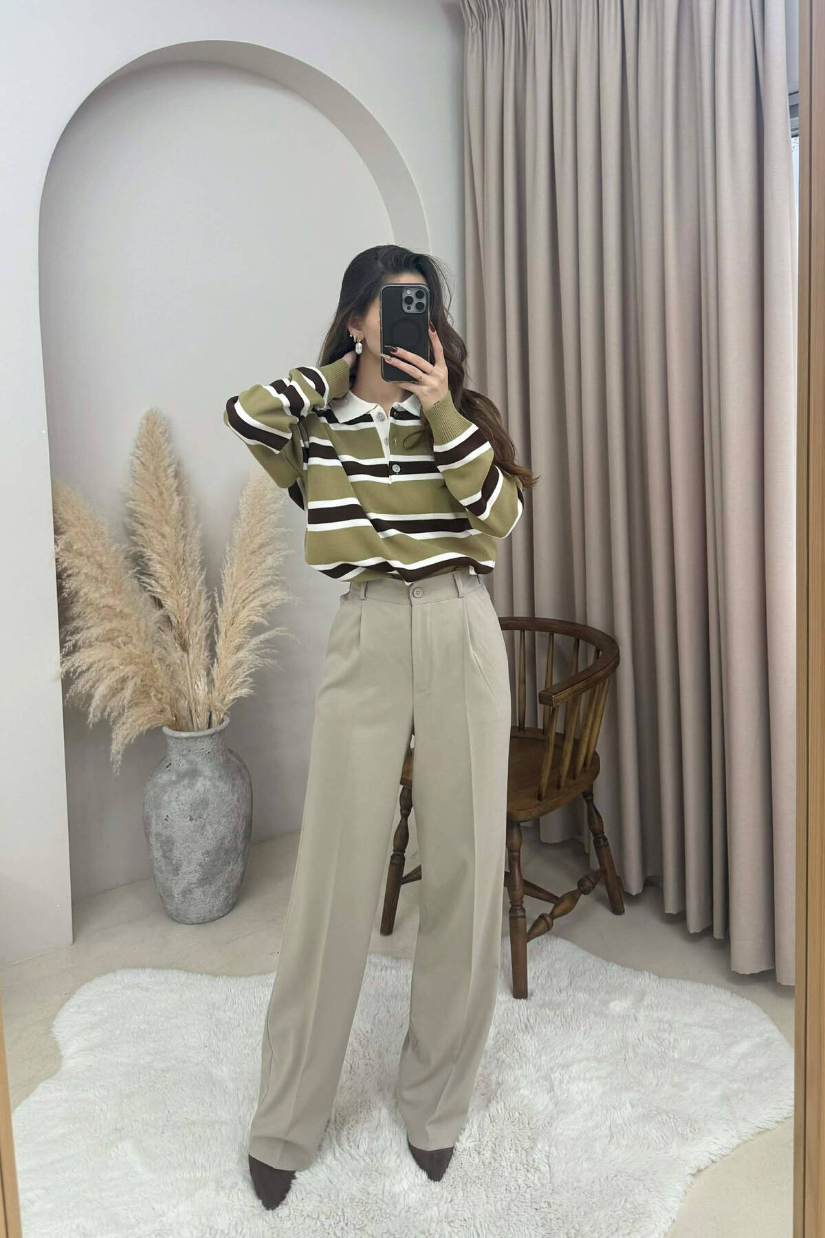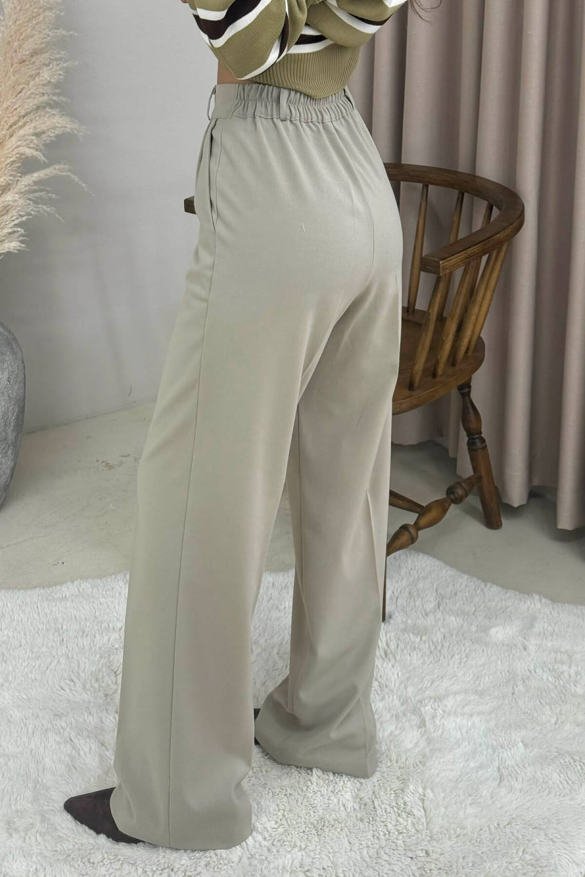 ONE COLOR SEMI ELASTIC WAIST WOMEN TROUSERS BEIGE/BEZHE