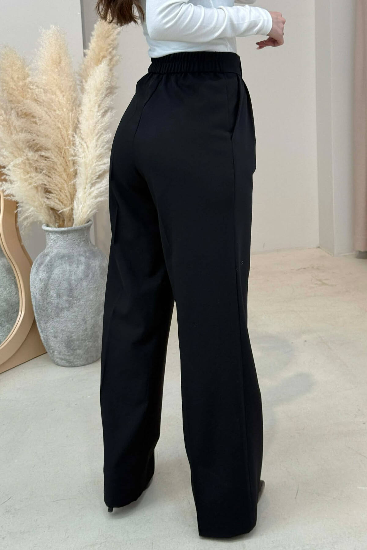 ONE COLOR WIDE LEG BELT DETAIL WOMAN TROUSERS BLACK/ E ZEZE