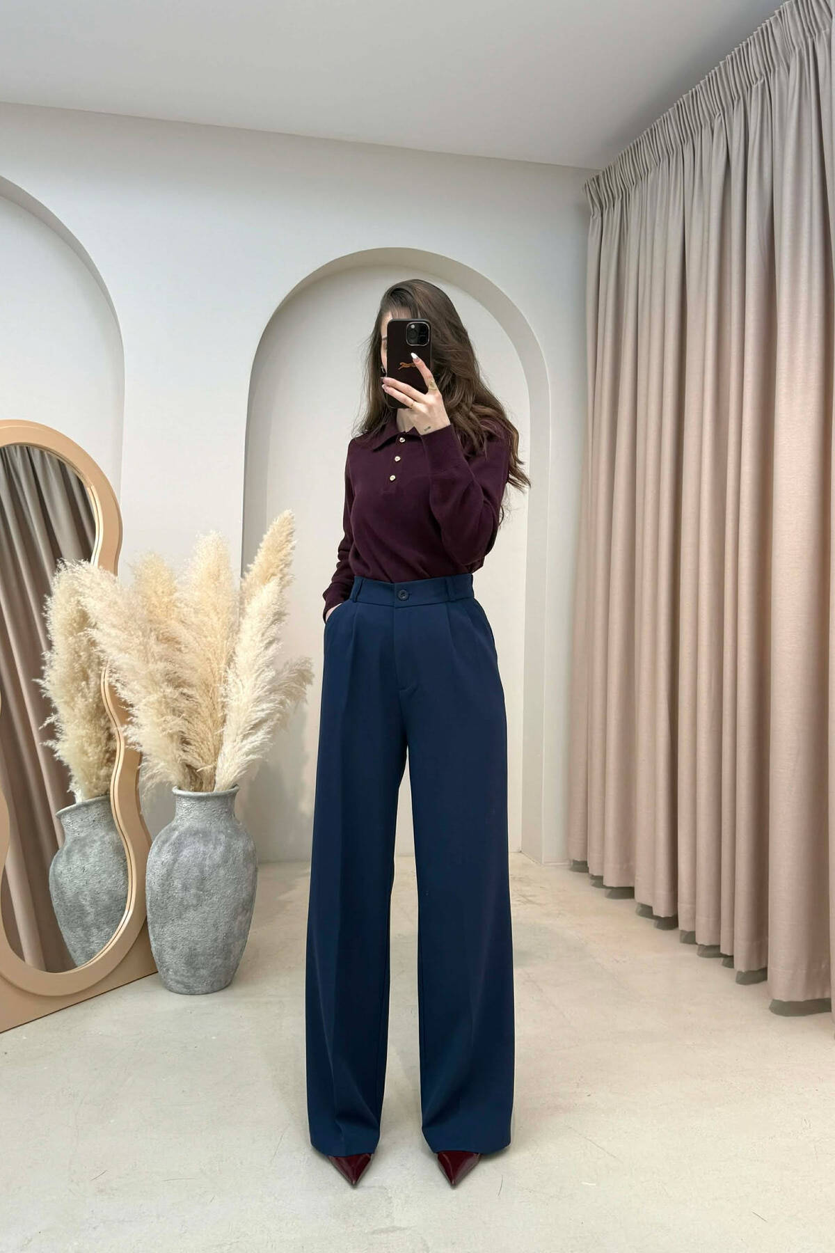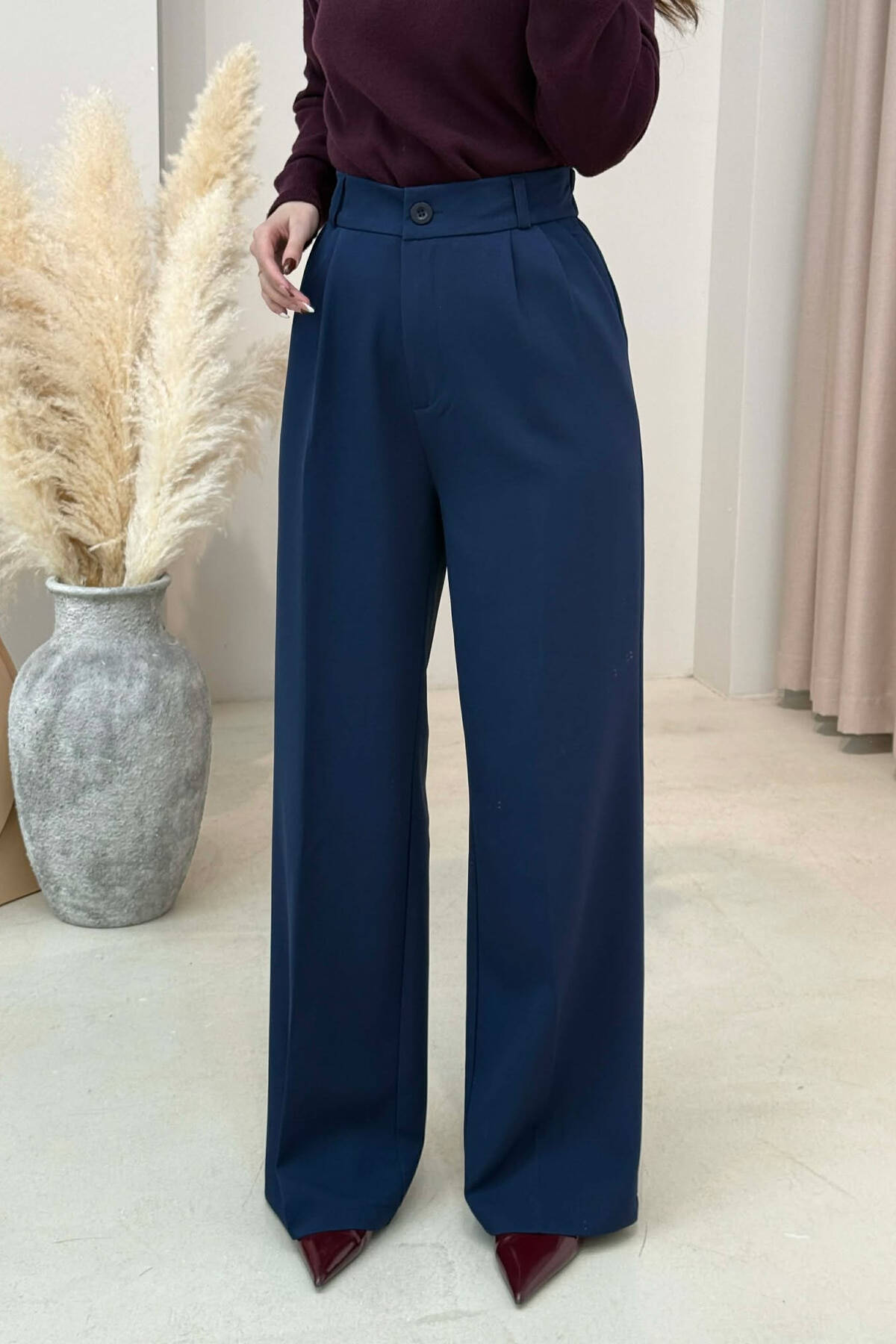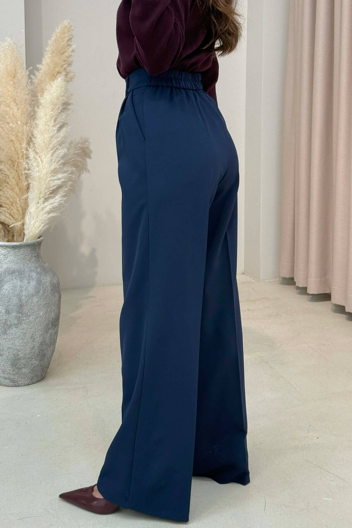 PANTALLONA NJE NGJYRESHE ME DETAJIN E RRIPIT PER FEMRA NE NGJYRE BLU