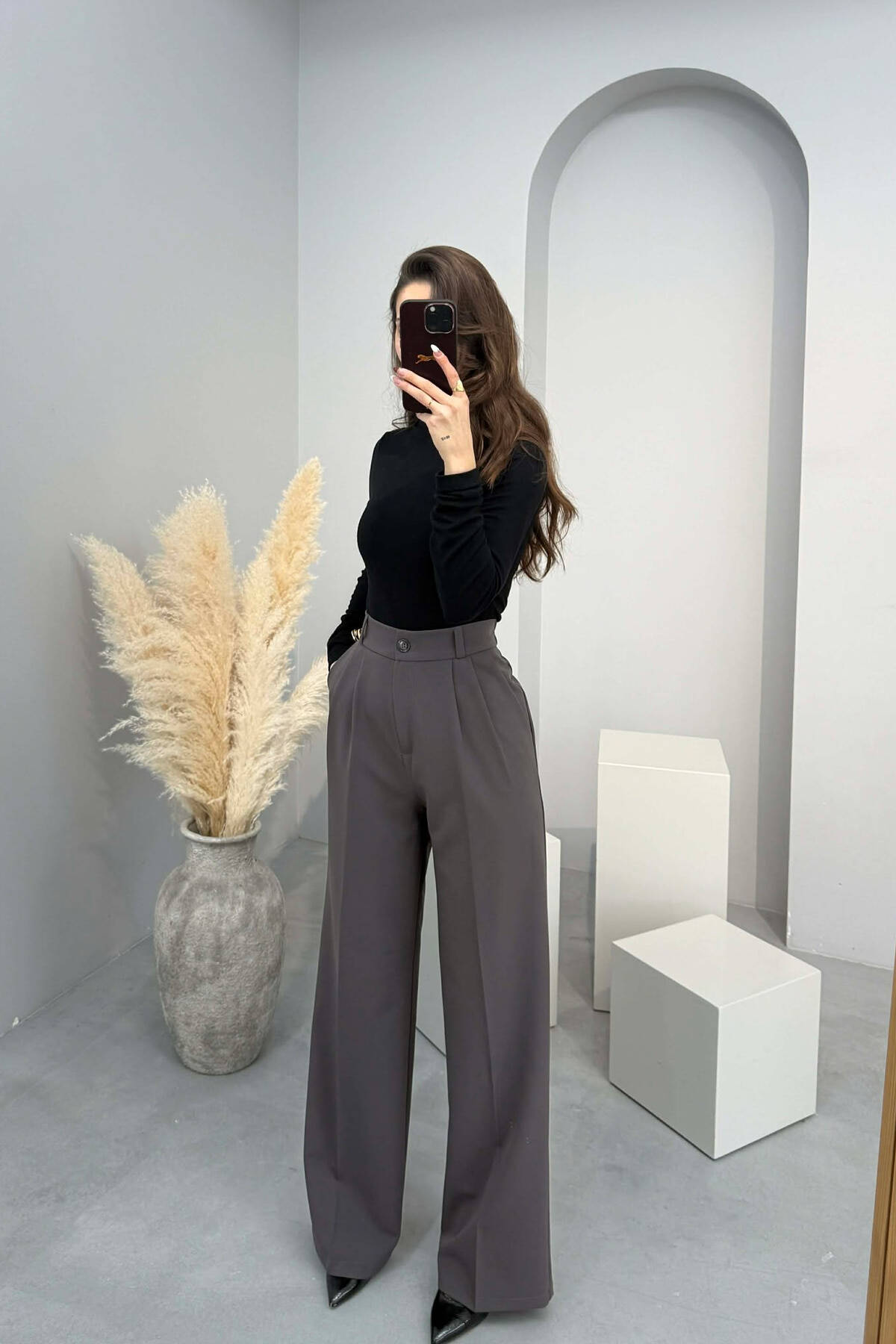ONE COLOR BELT DETAIL WOMAN TROUSERS DARK GREY/GEE