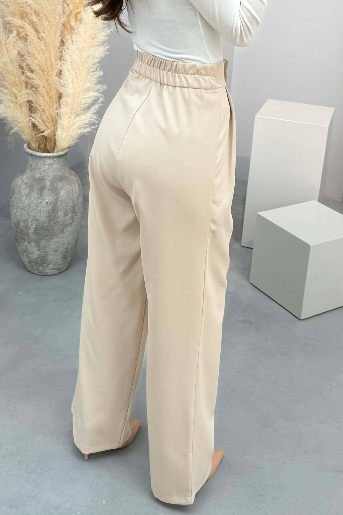 ONE COLOR SEMI ELASTIC WIDE LEG WOMAN TROUSERS BEIGE/BEZHE