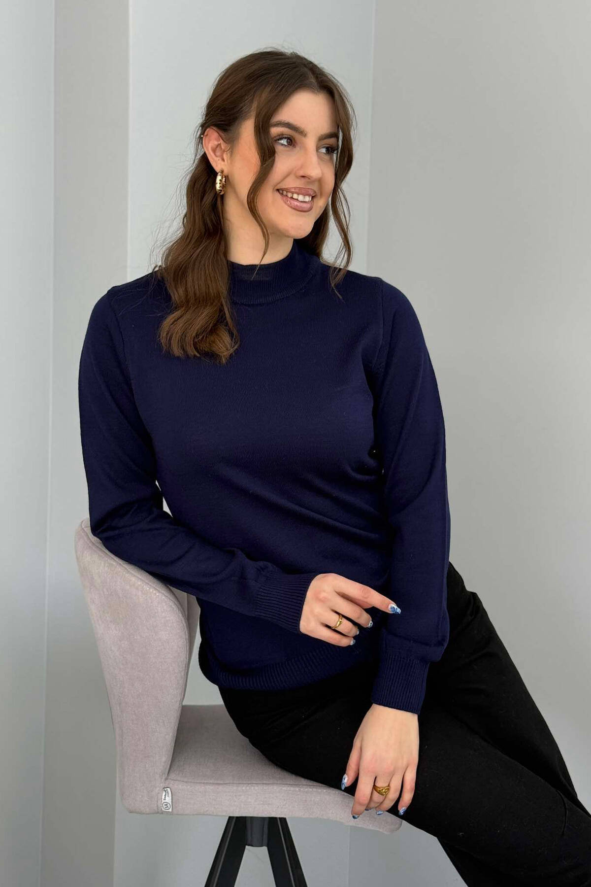 ONE COLOR SEMI NECK WOMEN SWEATER BLUE/BLU