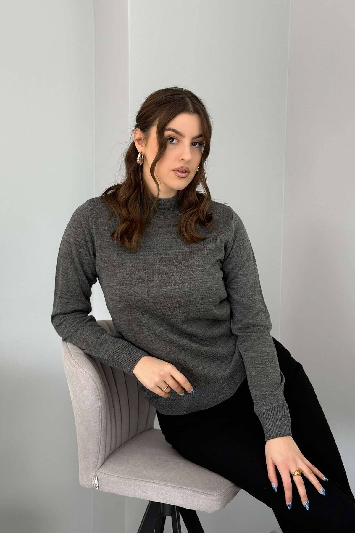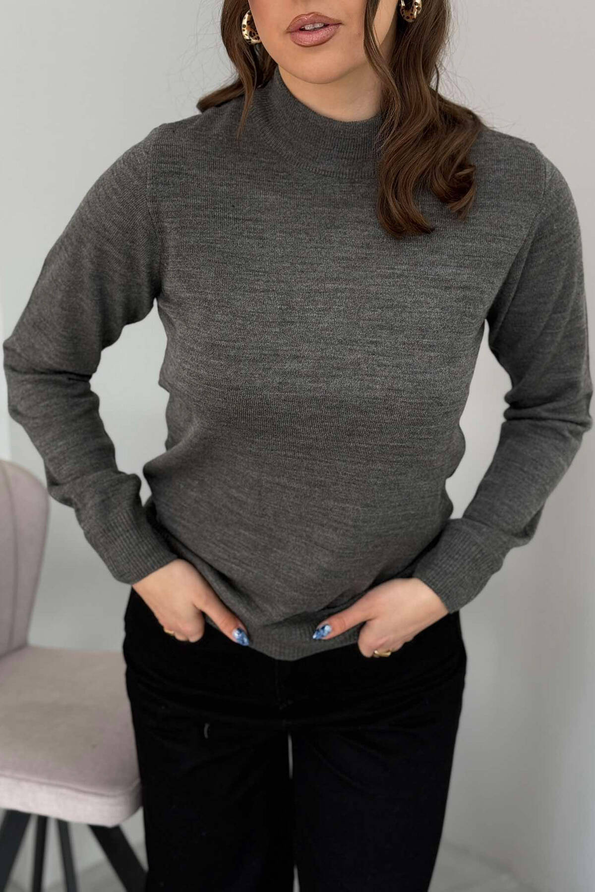 ONE COLOR SEMI NECK WOMEN SWEATER GREY/GRI