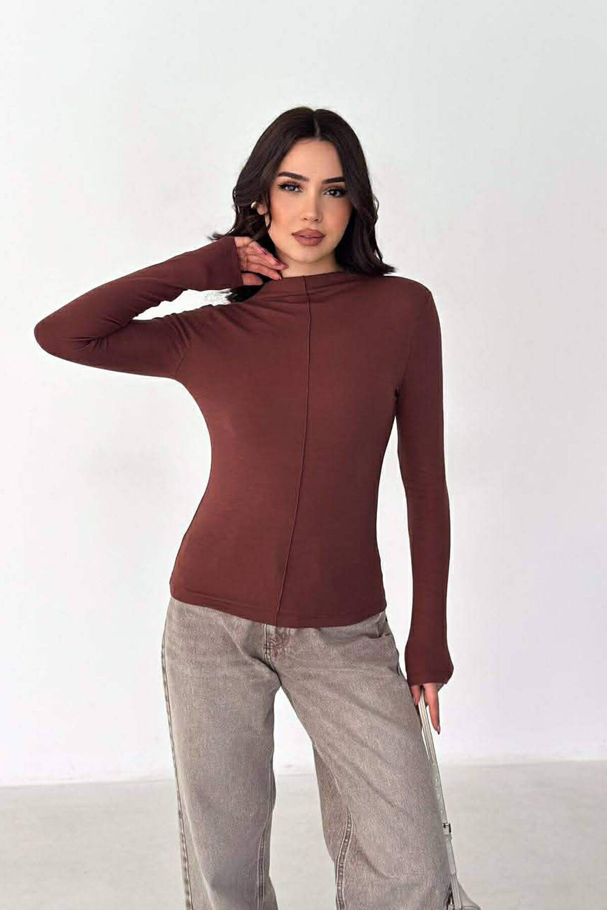 ONE COLOR SEMI NECK WOMAN SWEATSHIRT BROWN/KAFE