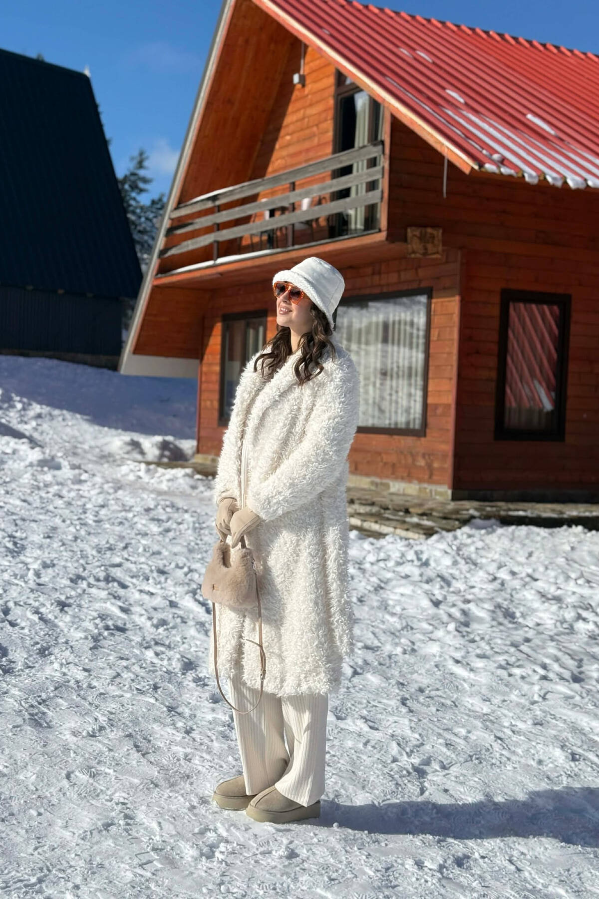 ONE COLOR SHEEP SKIN BELT LONG WOMAN COAT CREAM/KREM