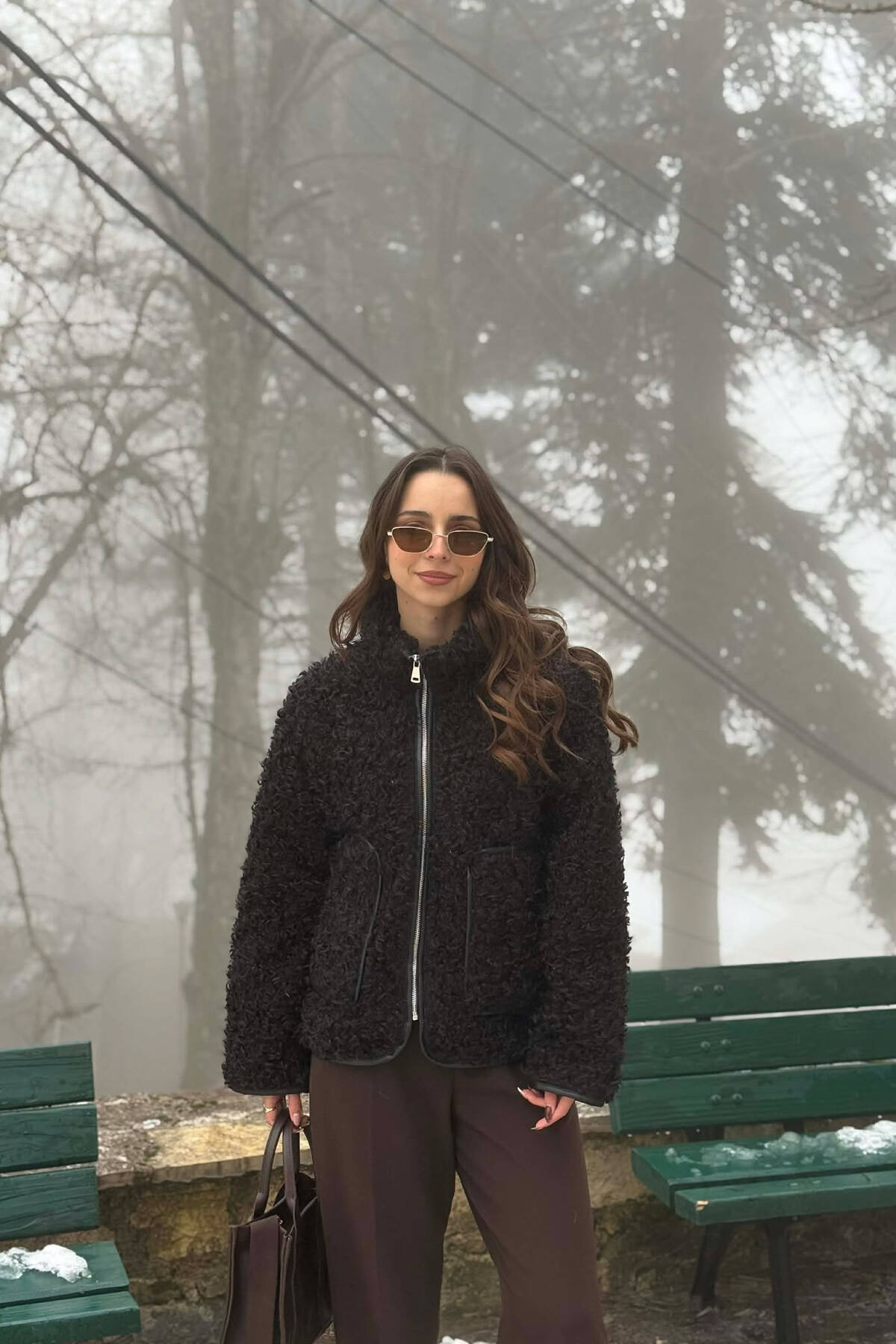 ONE COLOR SHEEP SKIN ZIPPER TWO FRONT POCKETS WOMAN COAT BLACK/ E ZEZE