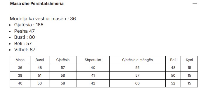 Size chart