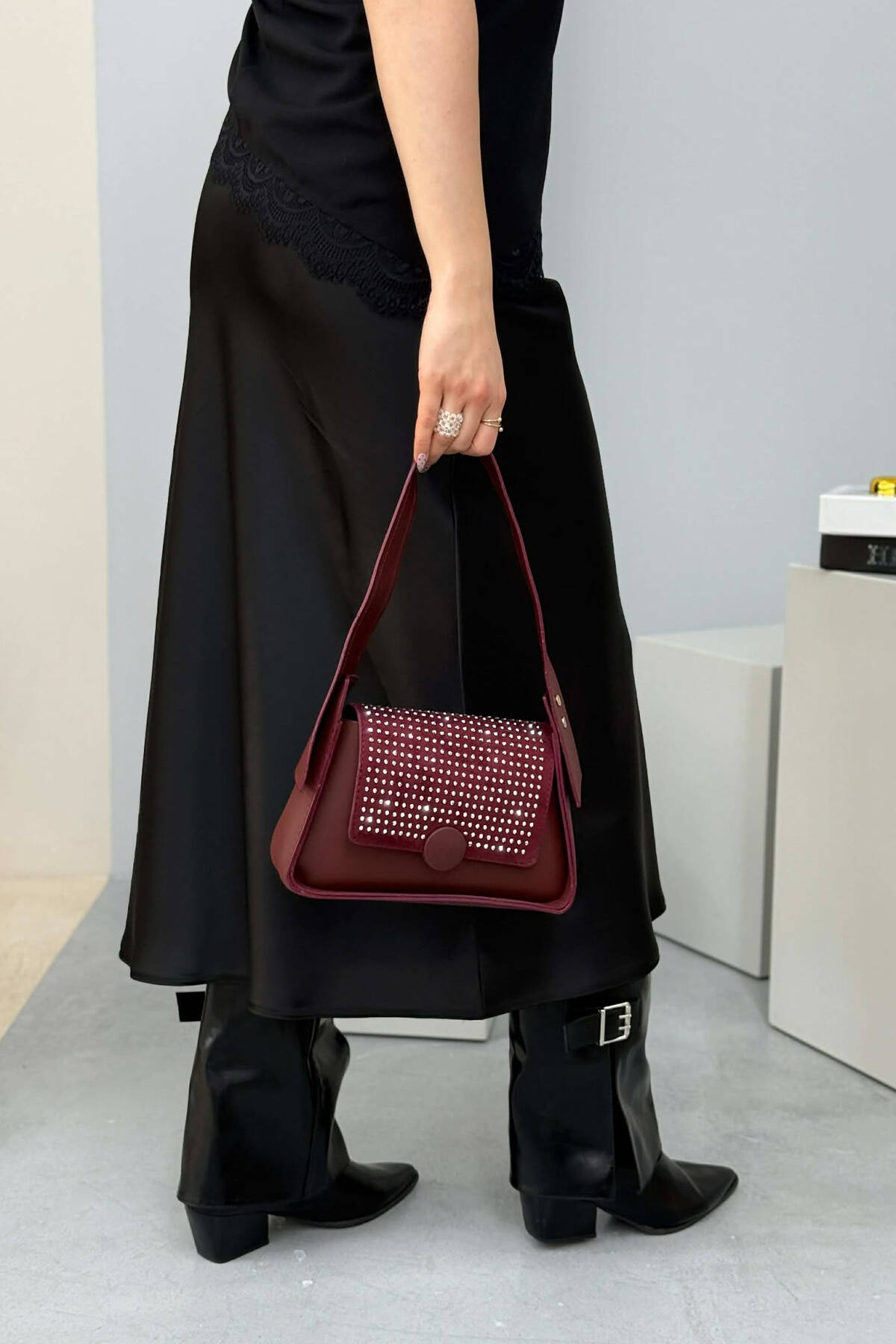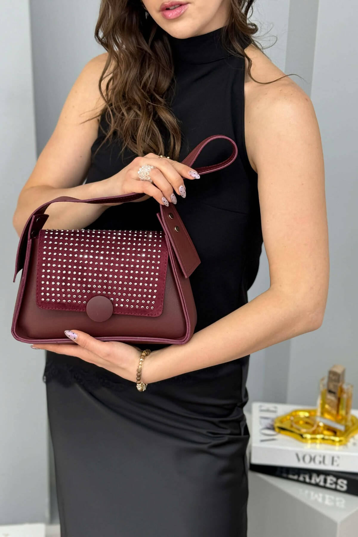 ONE COLOR SHINNY DETAILS WOMEN BAG BURGUNDY/VISHNJE