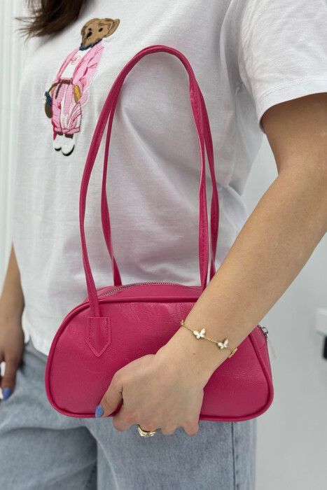 ÇANTË NJË NGJYRËSHE ME SHKËLQIM PËR FEMRA NË NGJYRËN CIKLAMI