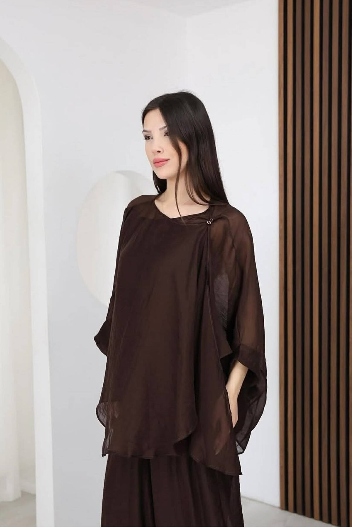ONE COLOR SHIRT + BALLON TROUSERS WOMAN SET BROWN/KAFE