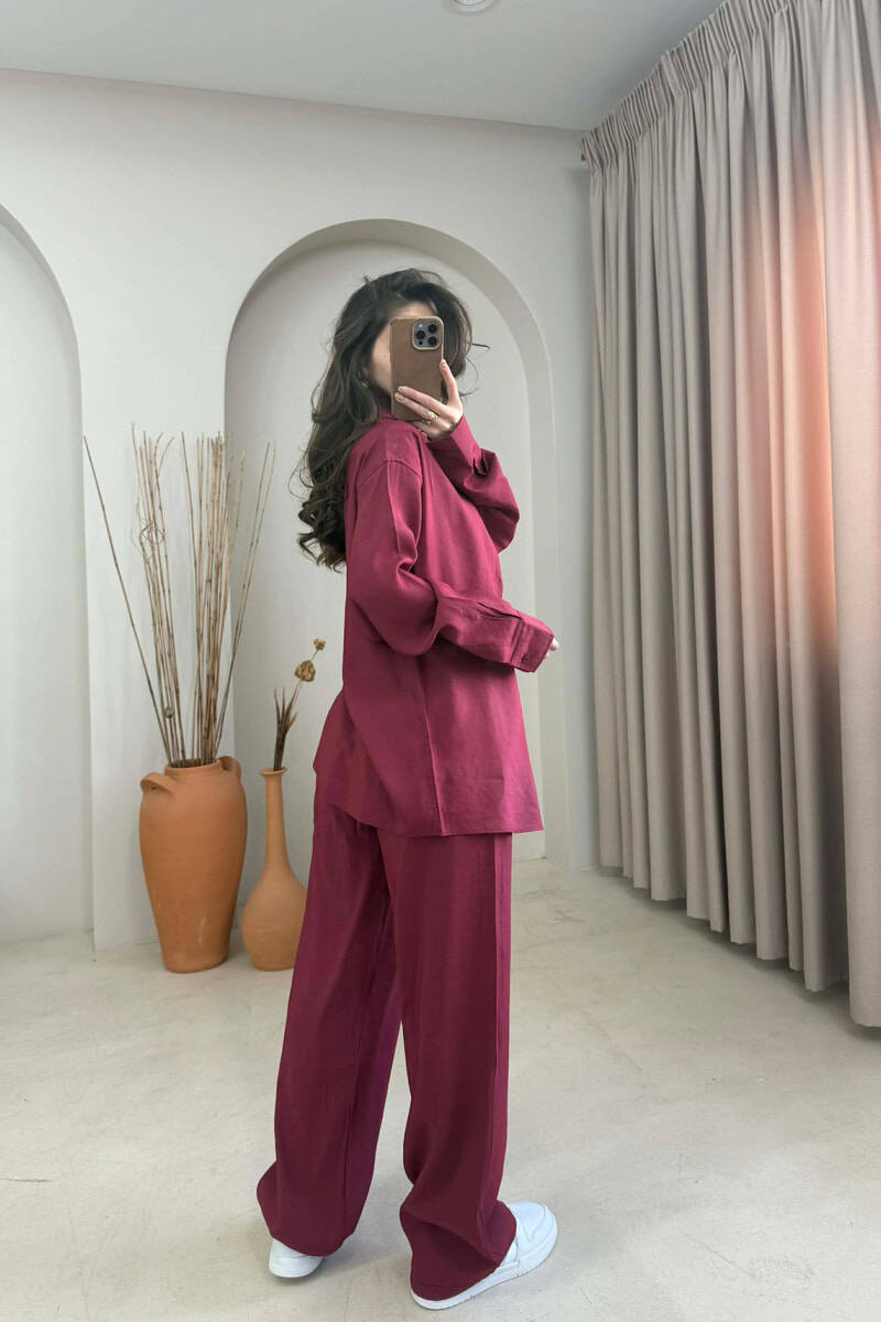 ONE COLOR SHIRT + TROUSERS WOMAN SET BURGUNDY/VISHNJE