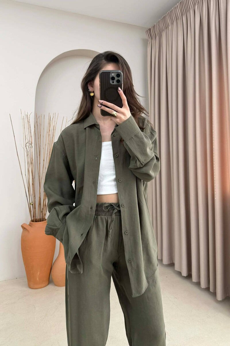 SET NJE NGJYRESH KEMISHE + PANTALLONA PER FEMRA NE NGJYRE JESHILE TE ERRET