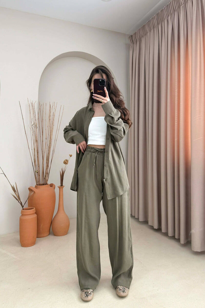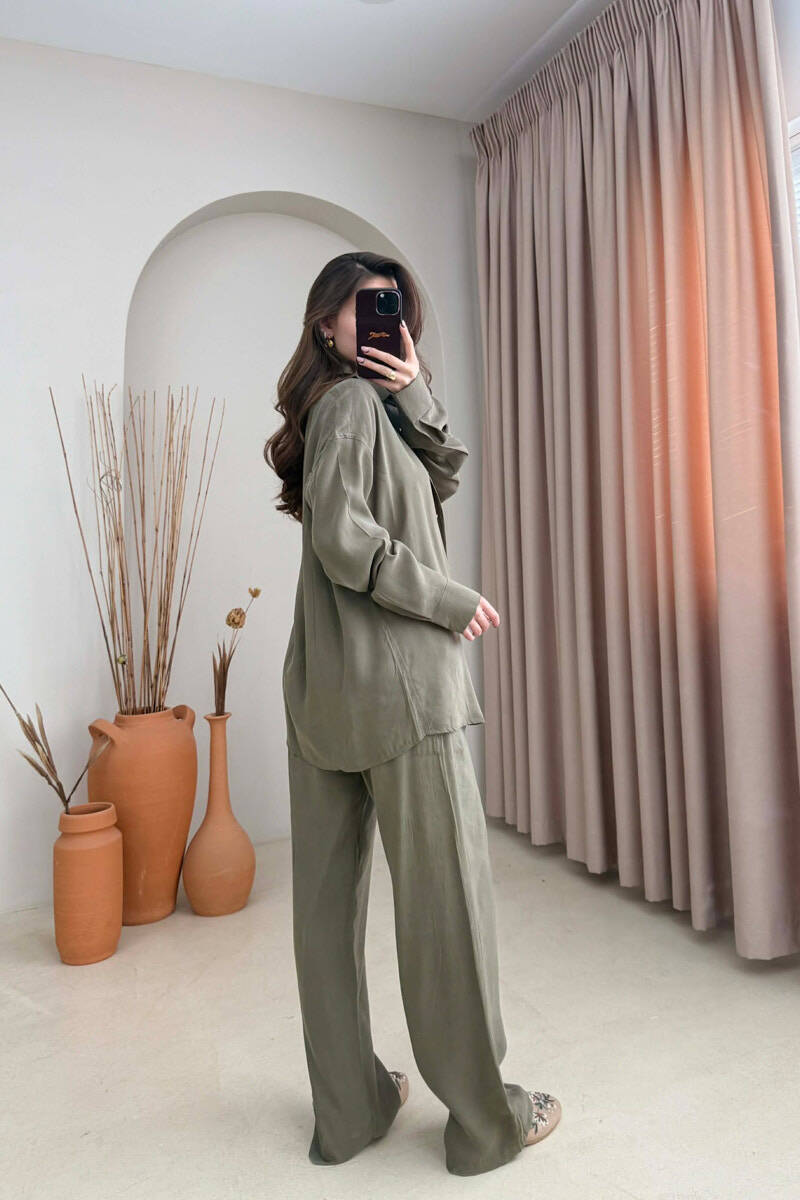 SET NJE NGJYRESH KEMISHE + PANTALLONA PER FEMRA NE NGJYRE ULLI