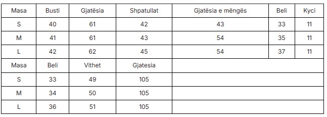 Size chart