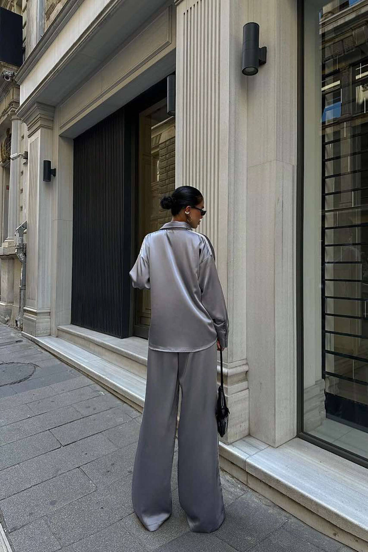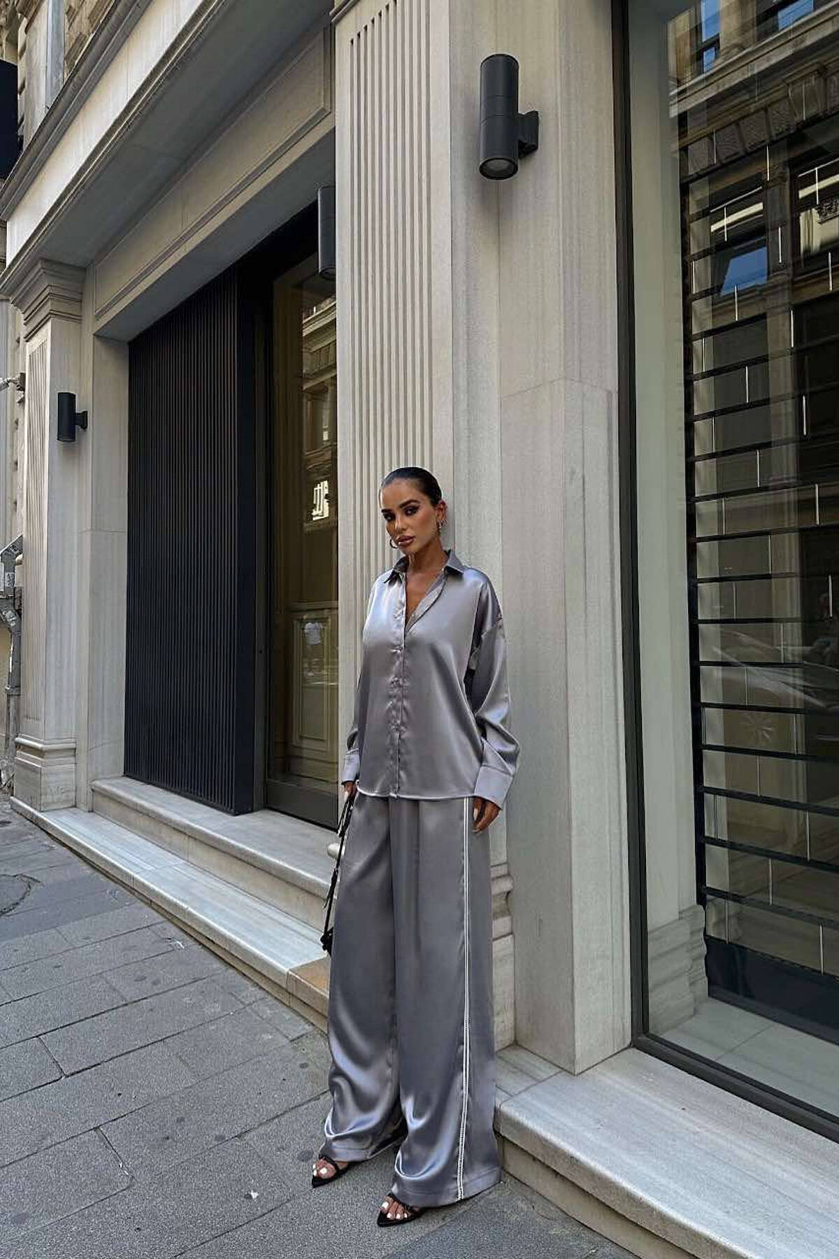 We bring you a satin suit for women with a shirt with elegant button details, while the pants come wide and with the designs of two white stripes on the side. Unique and elegant, it allows you to create fantastic outfits with it. Super quality, super style.
