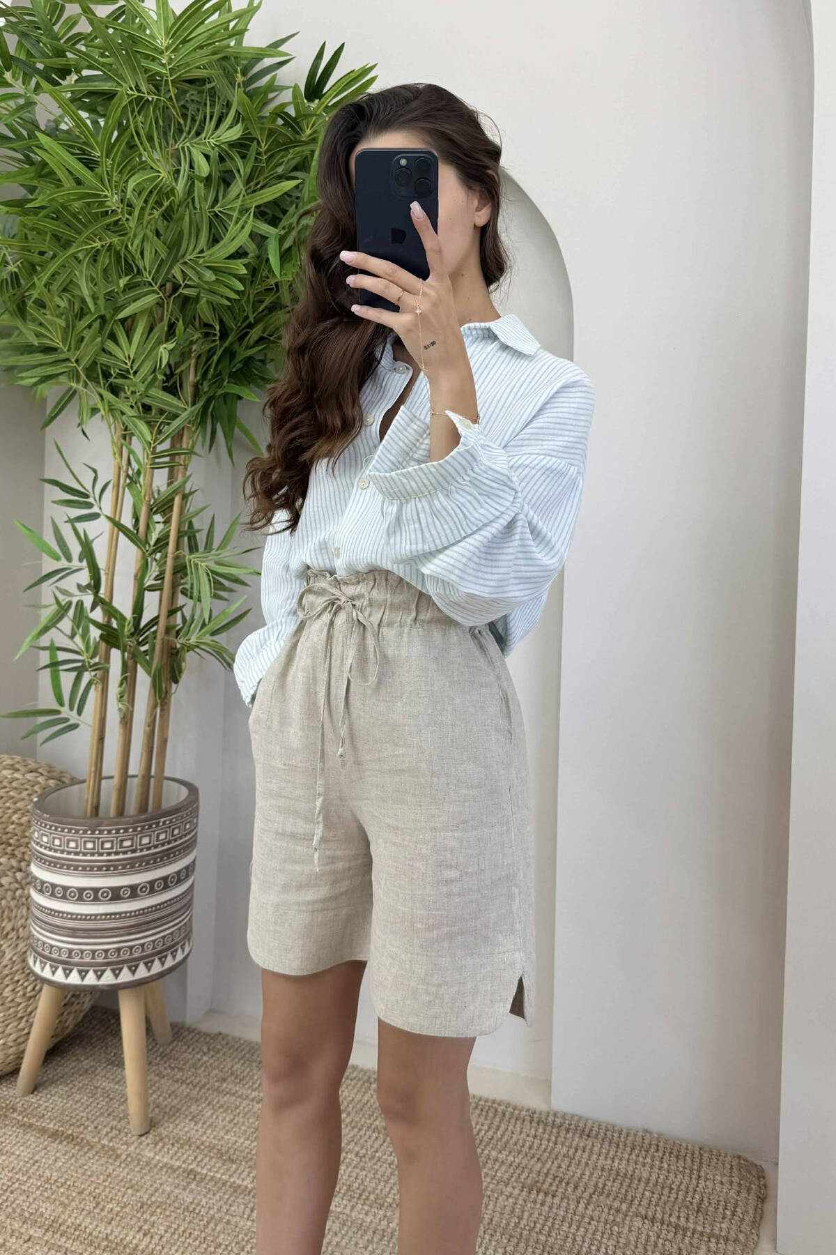 ONE COLOR SHORT LINEN WOMAN BEIGE/BEZHE