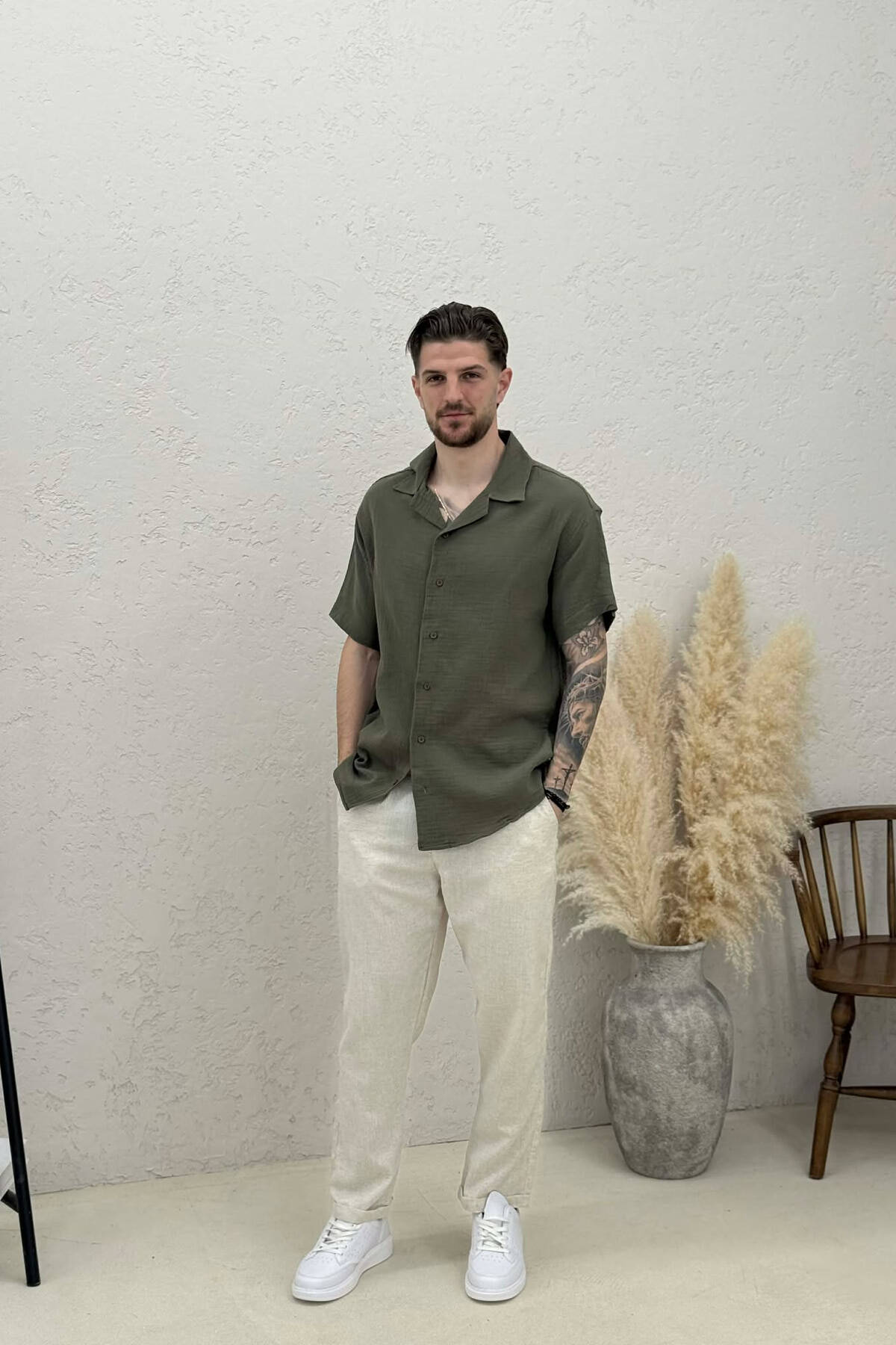 SHORT SLEEVE ONE COLOR MEN SHIRT BEIGE/BEZHE