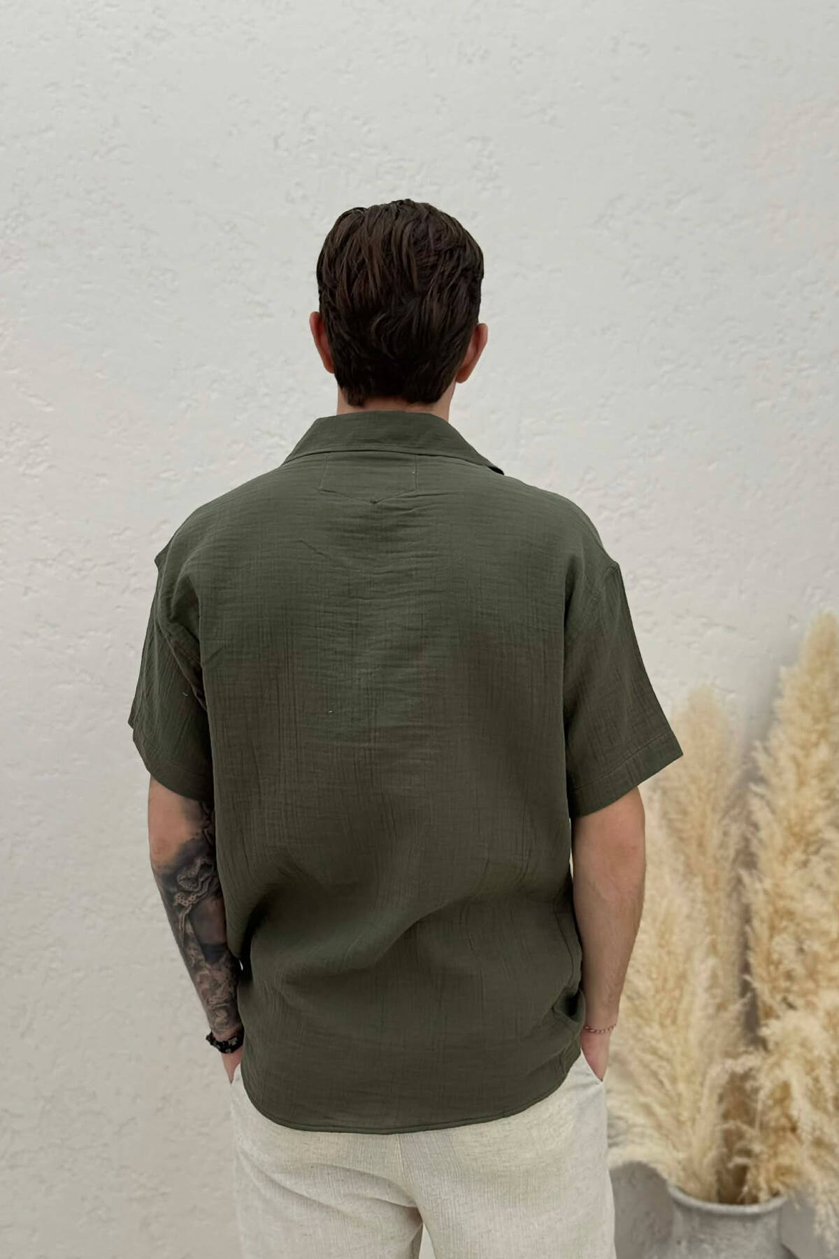 ONE COLOR SHORT SLEEVE MEN SHIRT GREEN/JESHILE