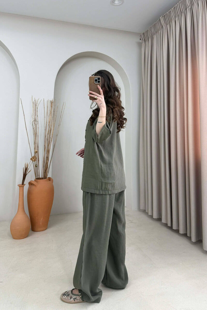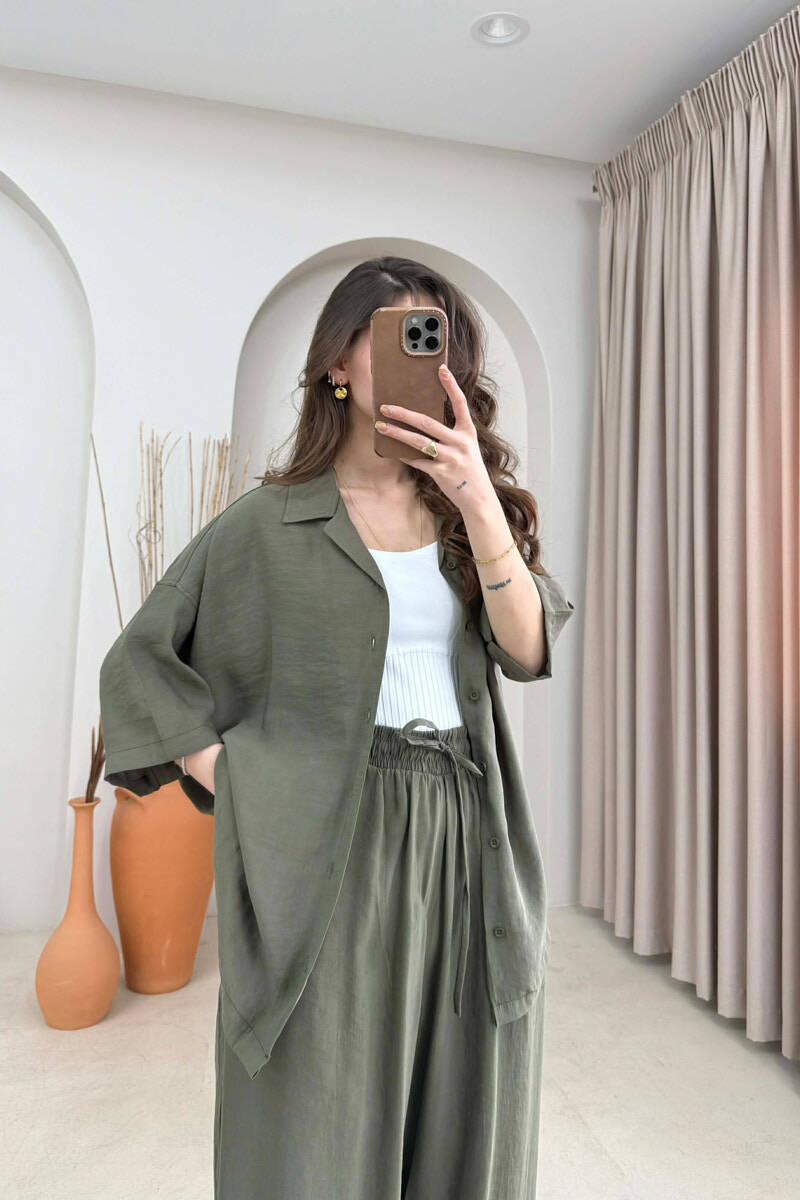 SET NJE NGJYRESH KEMISHE ME MENGE TE SHKURTRA +PANTALLONA PER FERMA NE NGJYRE JESHILE