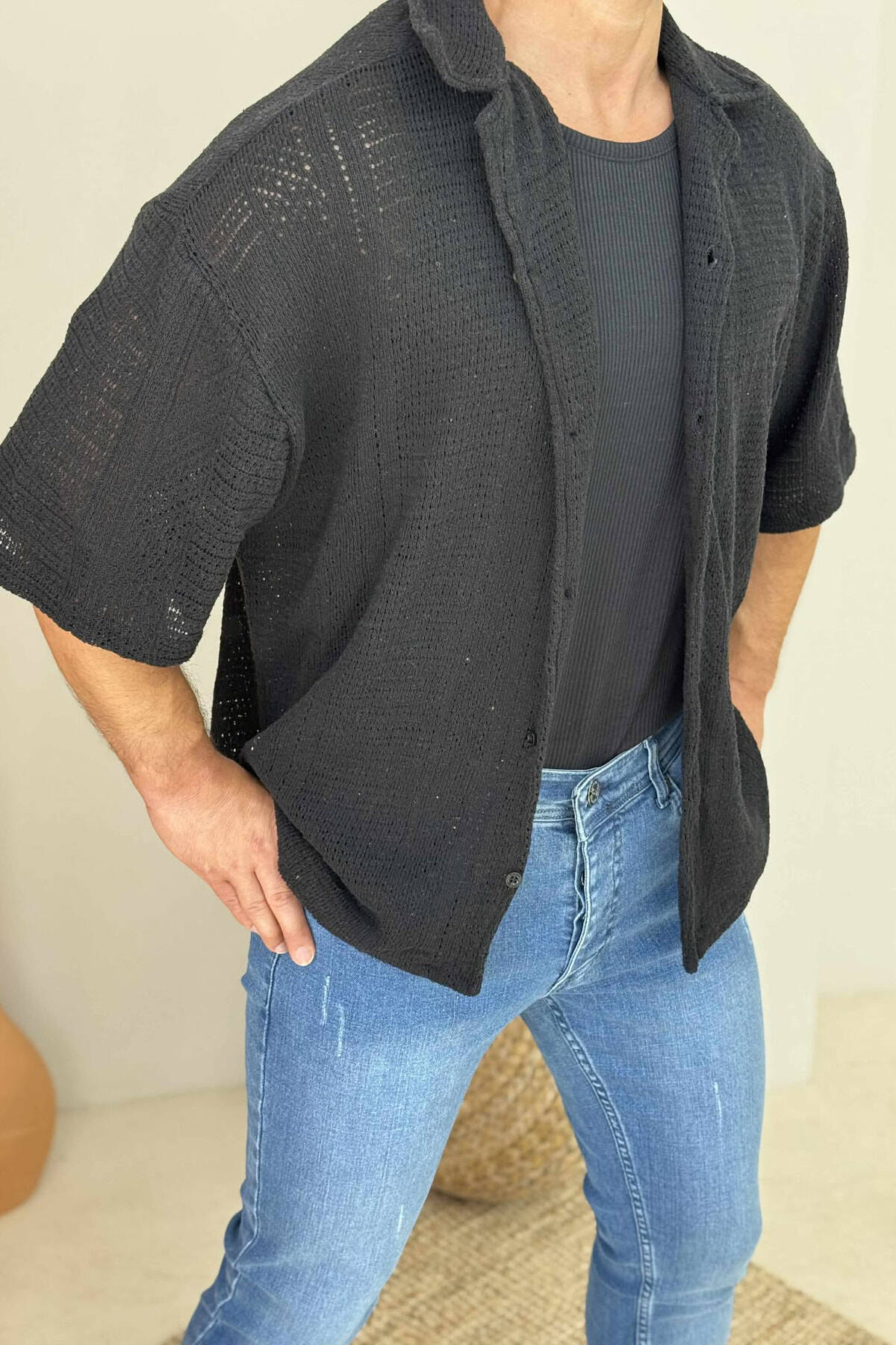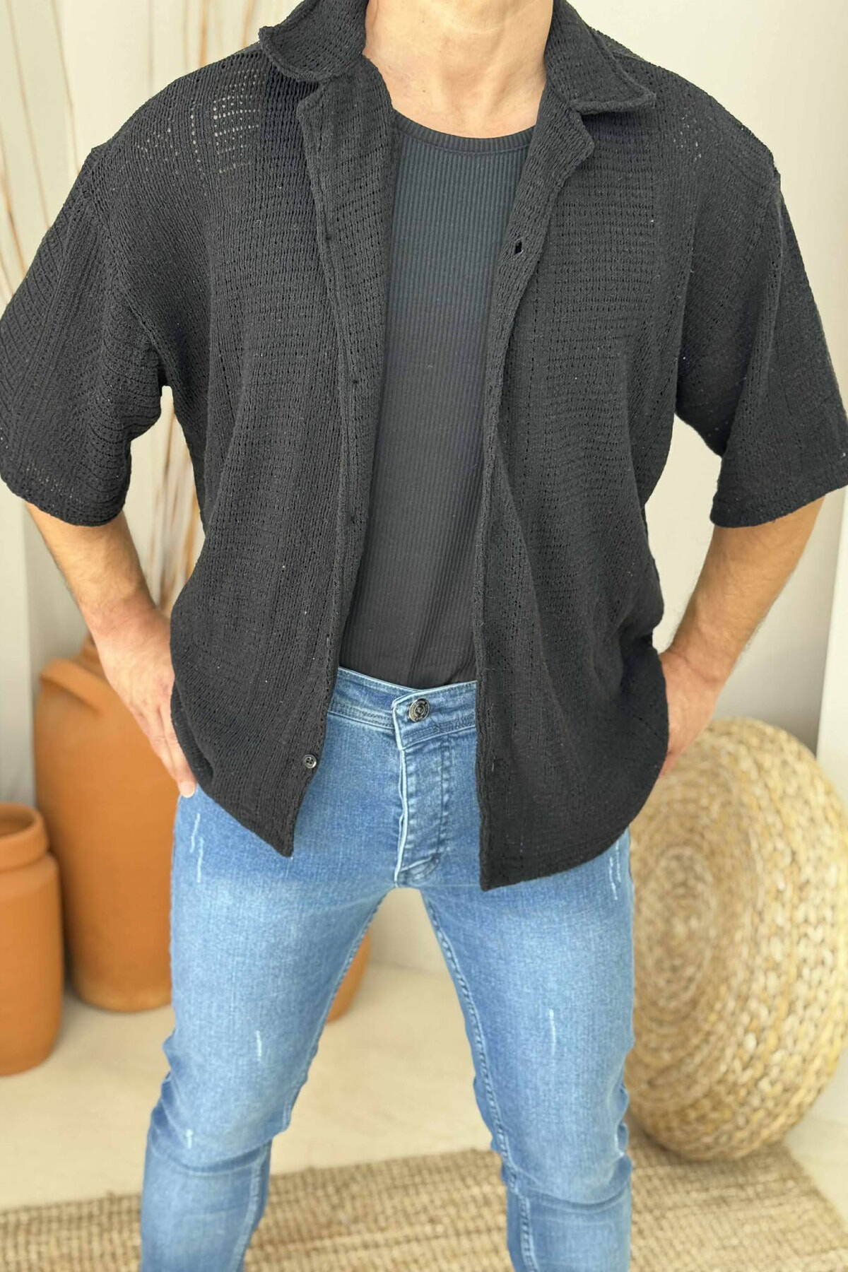 KËMISHË E THJESHTË ME MËNGË TË SHKURTRA PËR MESHKUJ NË NGJYRËN E ZEZË