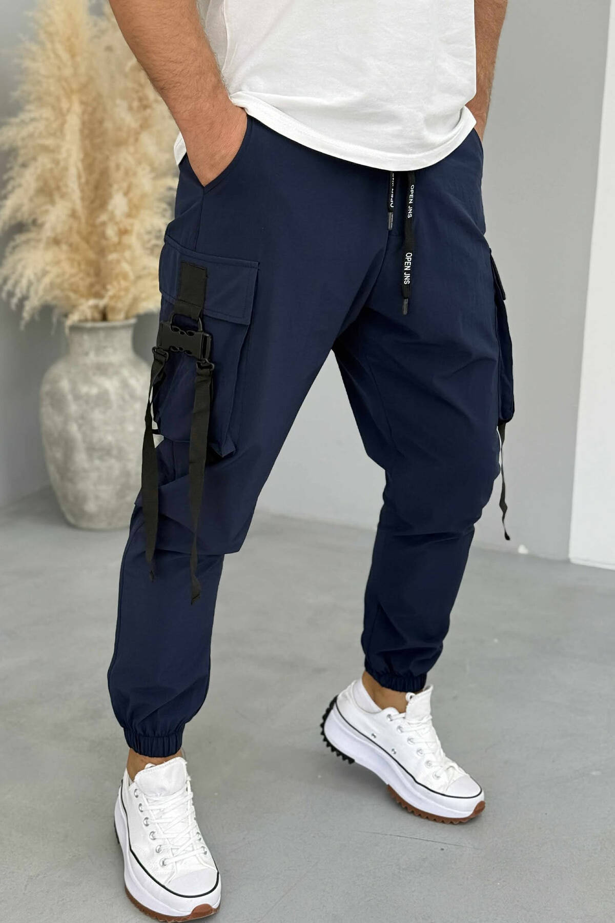 ONE COLOR SIDE POCKETS DETAILS MEN PANTS DARK BLUE/BEE