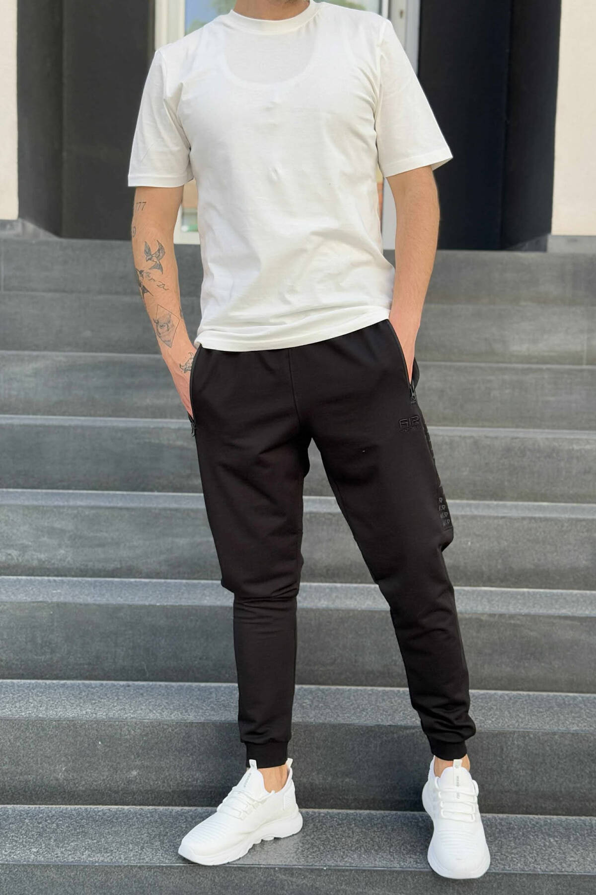 ONE COLOR SIDE WRITTINGS MEN SWEATPANTS BLACK/ E ZEZE