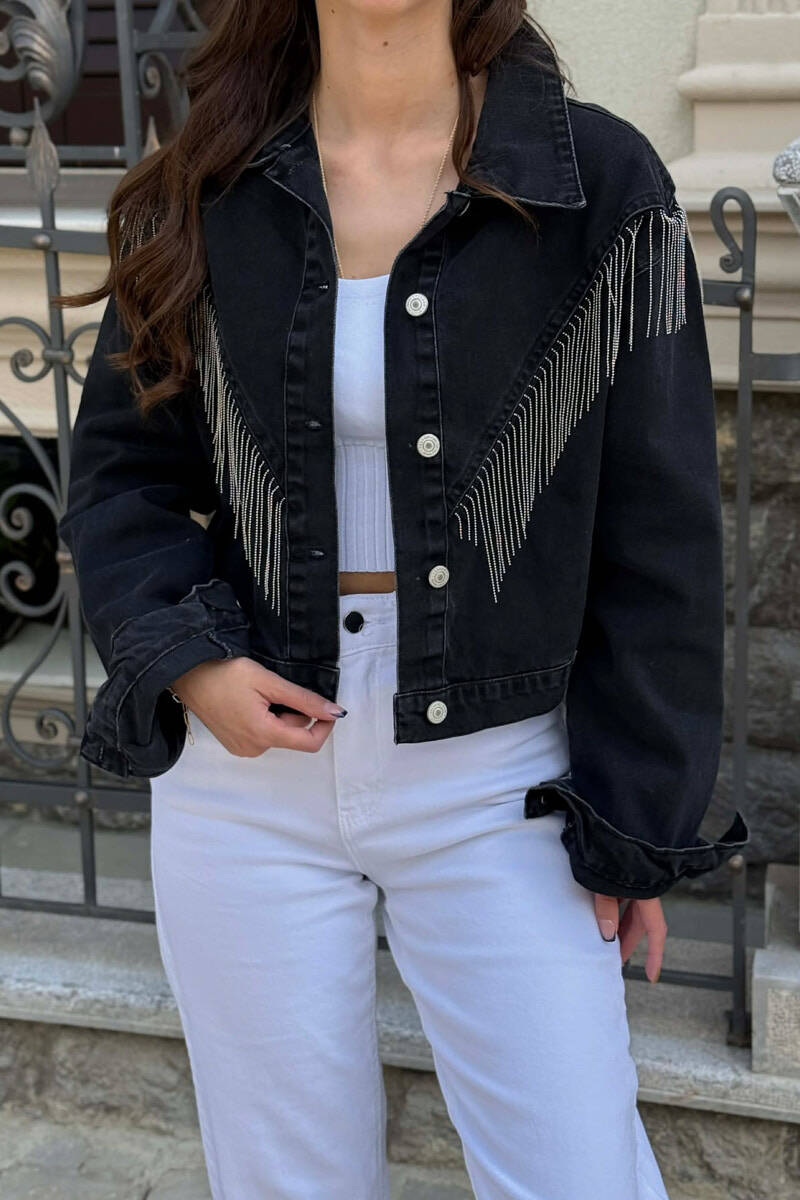 ONE COLOR SILVER DETAILS DENIM WOMEN JACKET BLACK/ E ZEZE