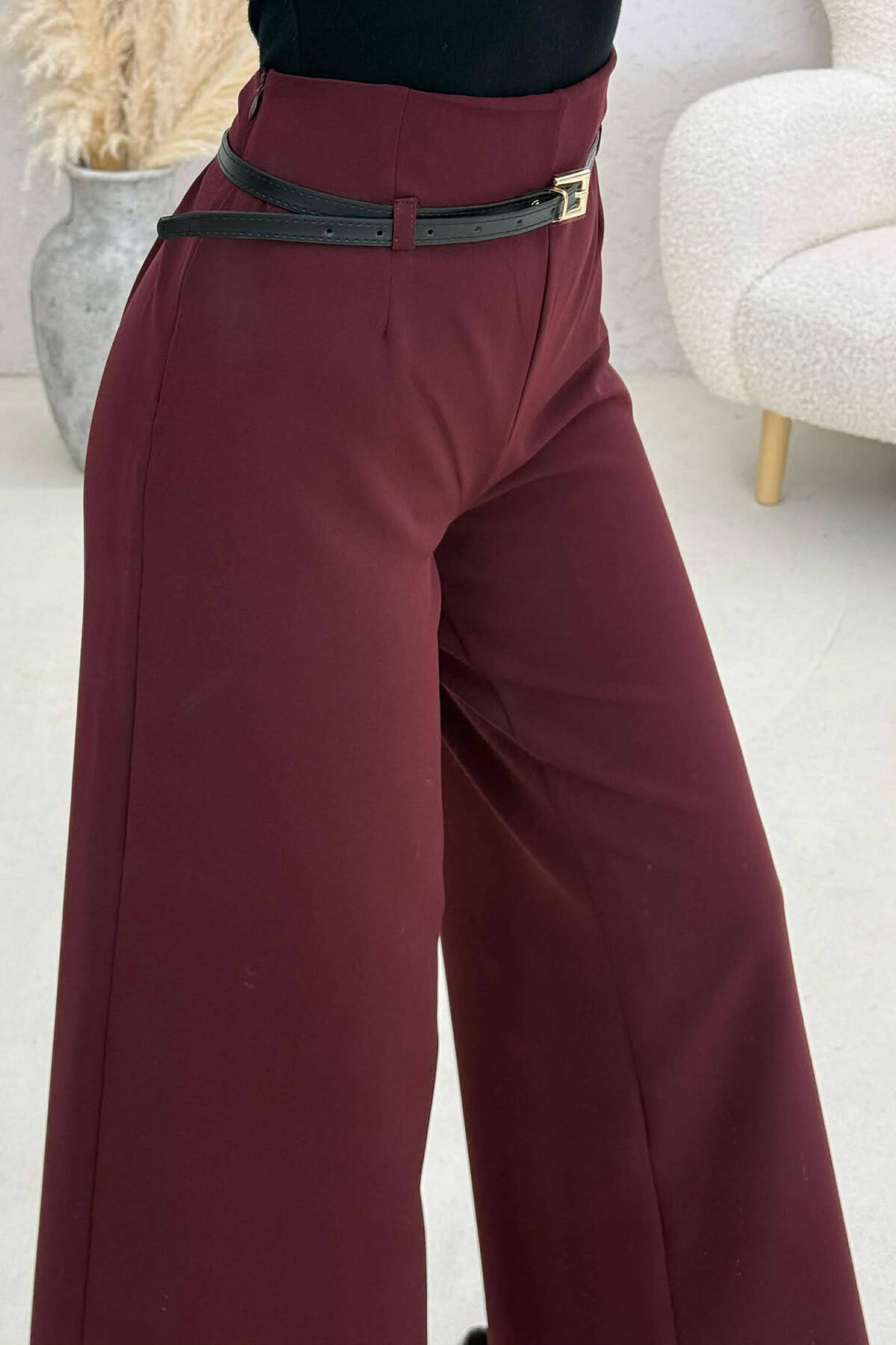 ONE COLOR SIMPLE BELT DETAIL WOMAN TROUSERS BURGUNDY/VISHNJE