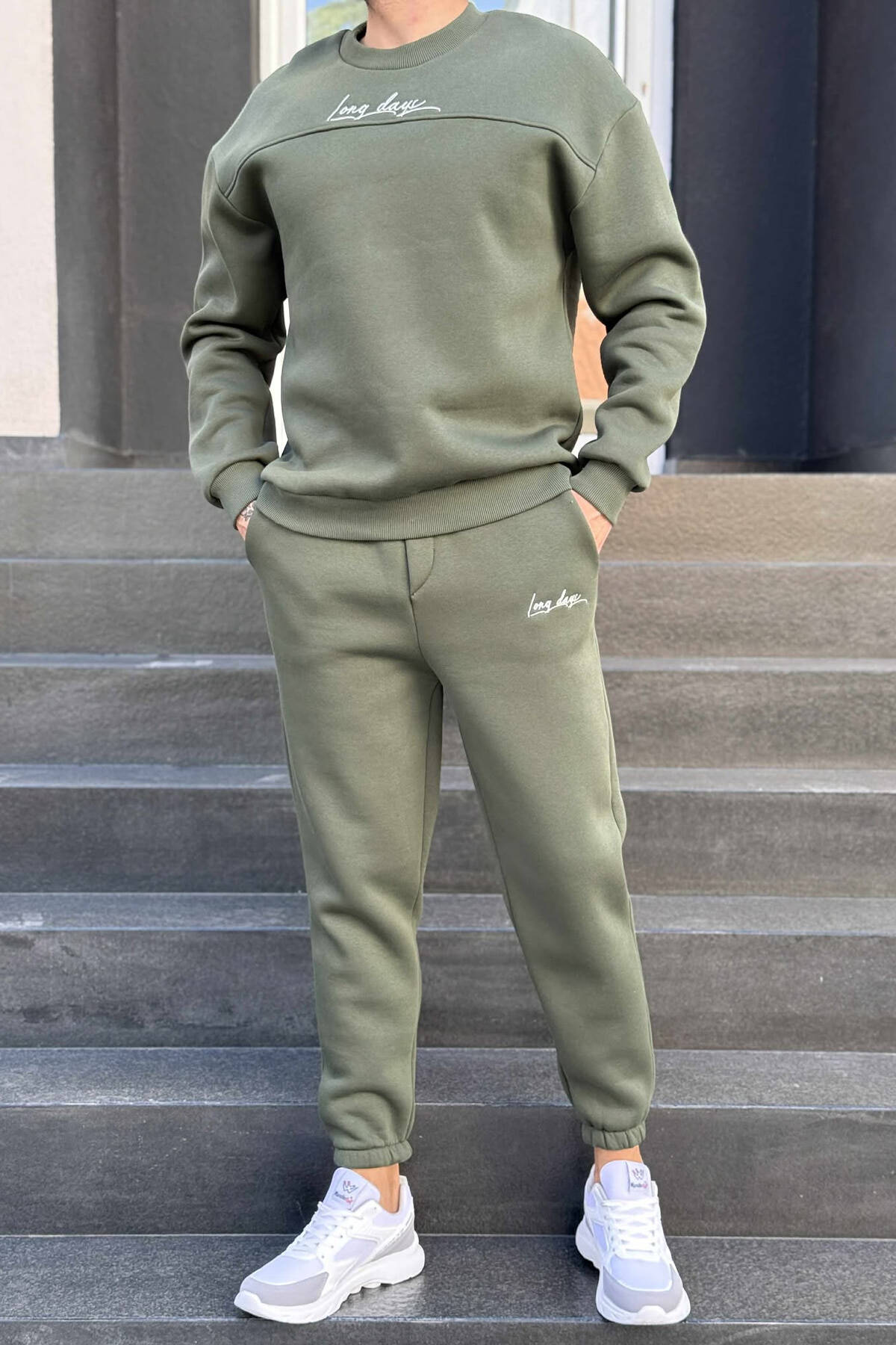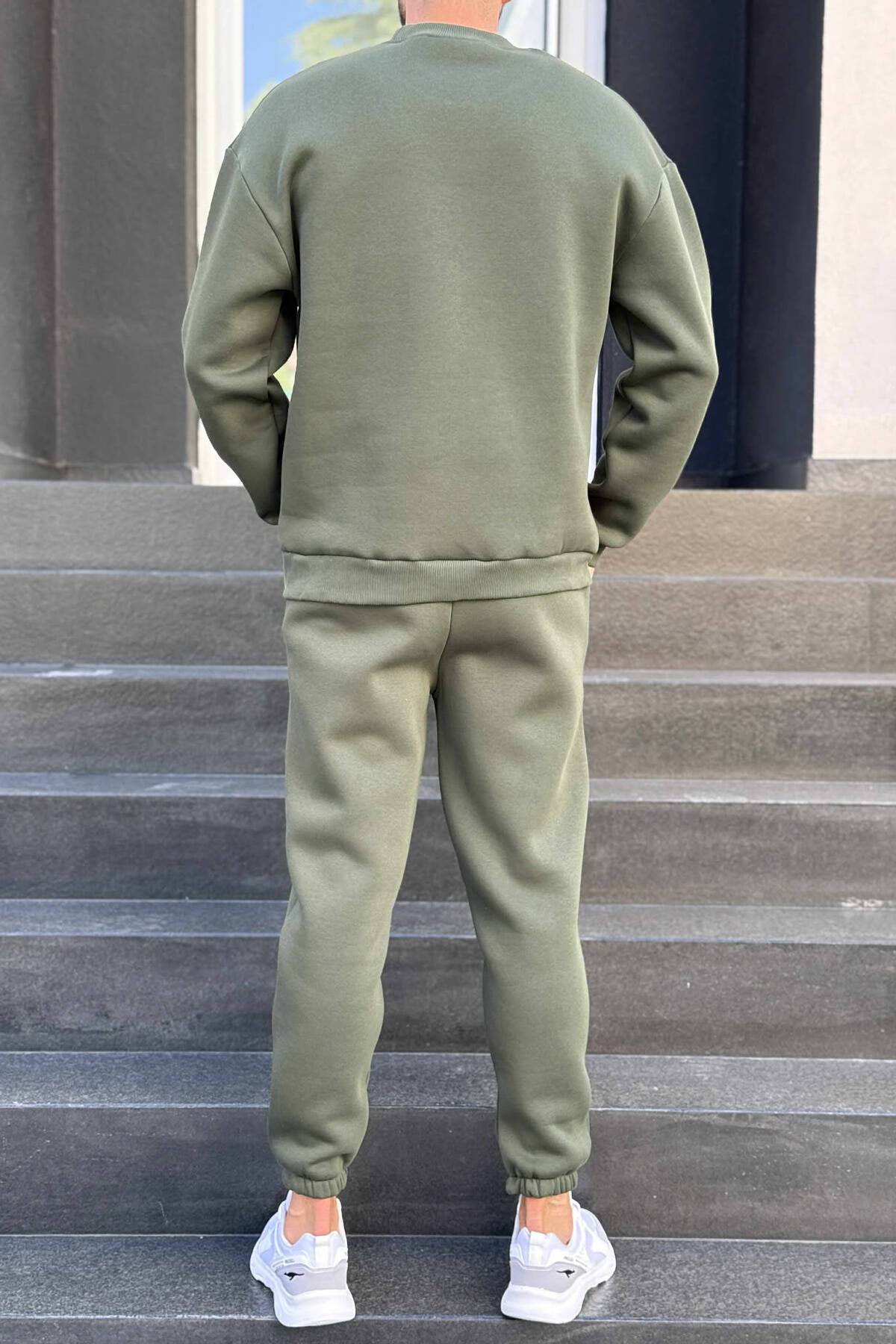 ONE COLOR SIMPLE BLOUSE+JOGGERS MEN SET DARK GREEN/JEE