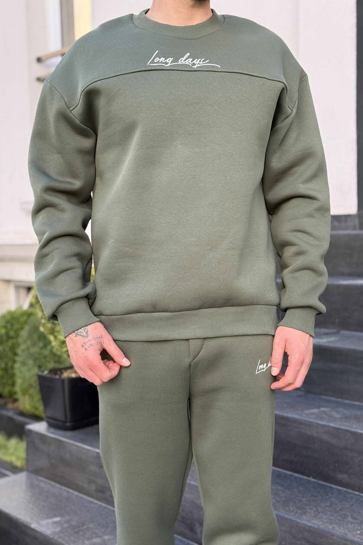 ONE COLOR WRITTINGS T-SHIRT + SHORTS MEN SET GREEN/JESHILE