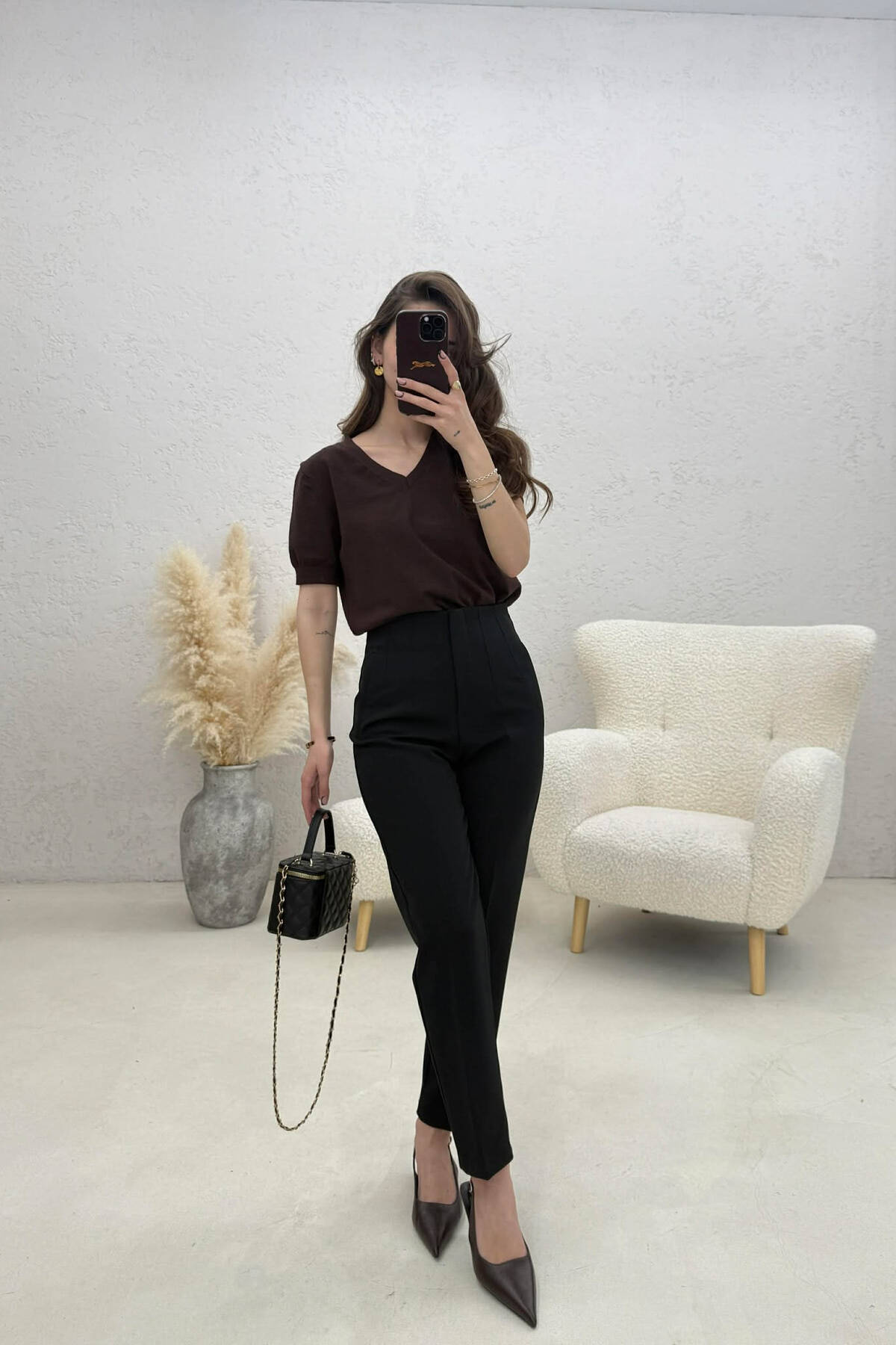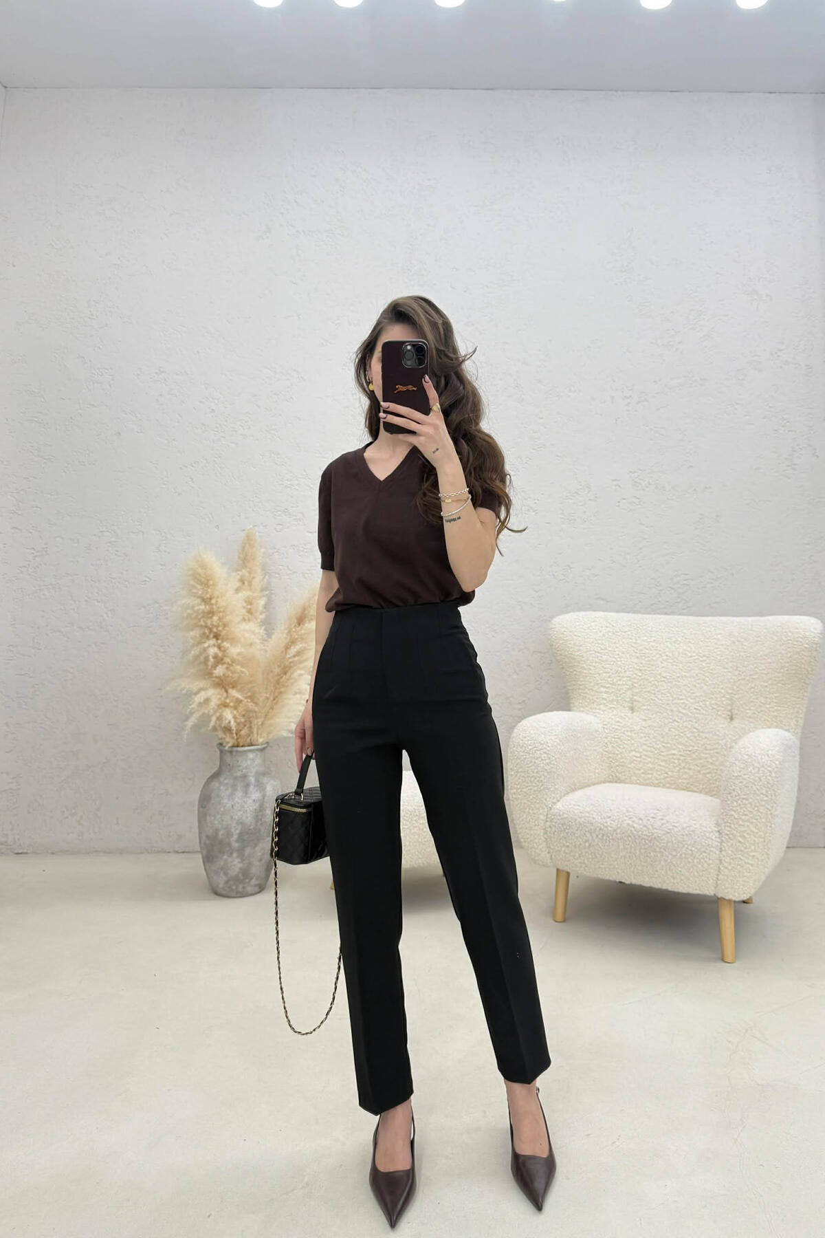 ONE COLOR BELT DETAIL WOMEN TROUSERS BLACK/ E ZEZE
