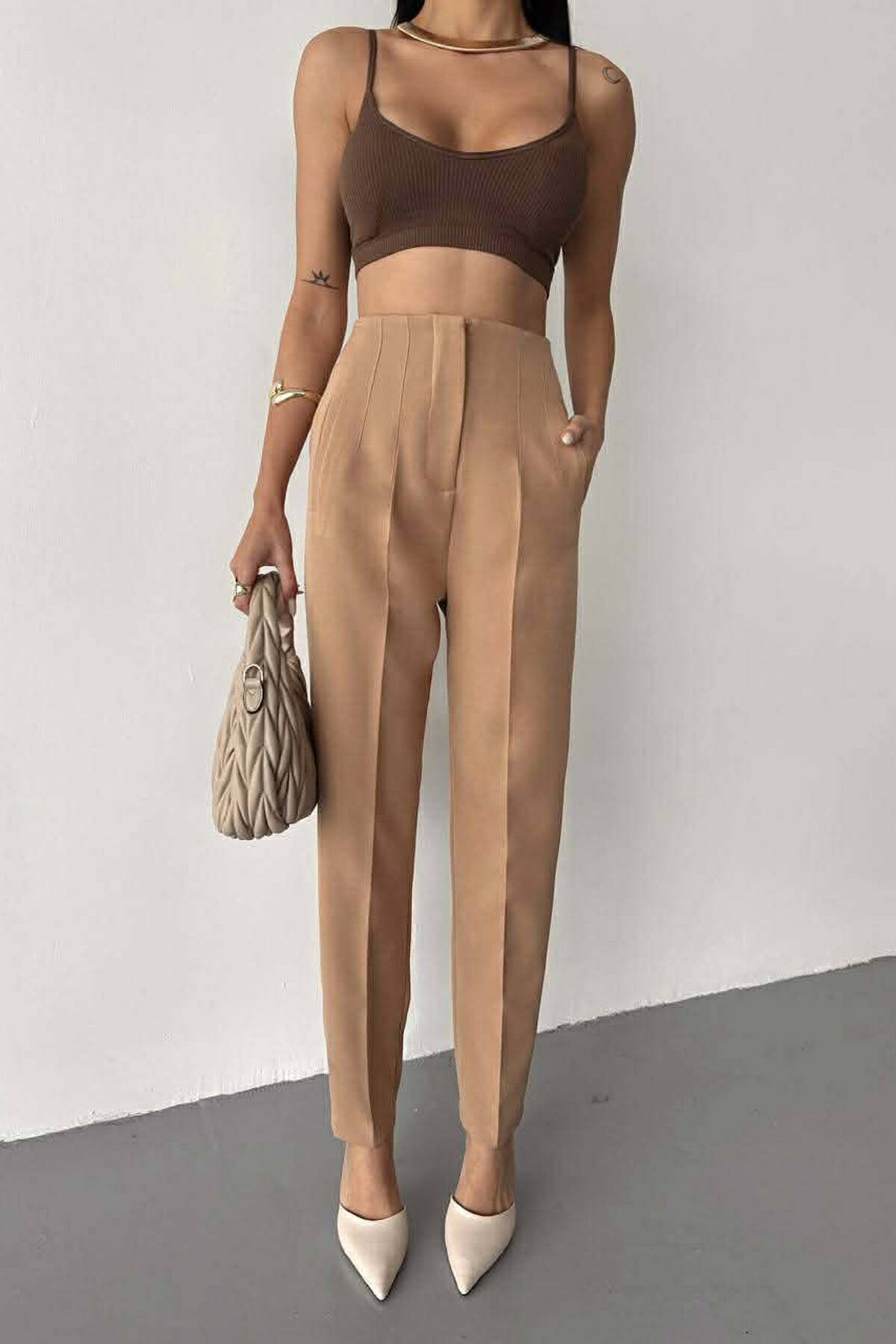 ONE COLOR SIMPLE CLASSIC WOMEN TROUSERS BEIGE/BEZHE