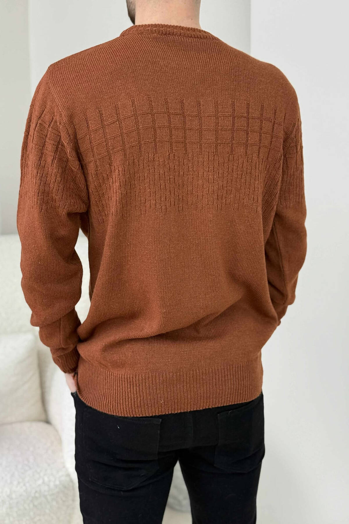 ONE COLOR SIMPLE DESIGN MEN SWEATER BRICK/TULLE