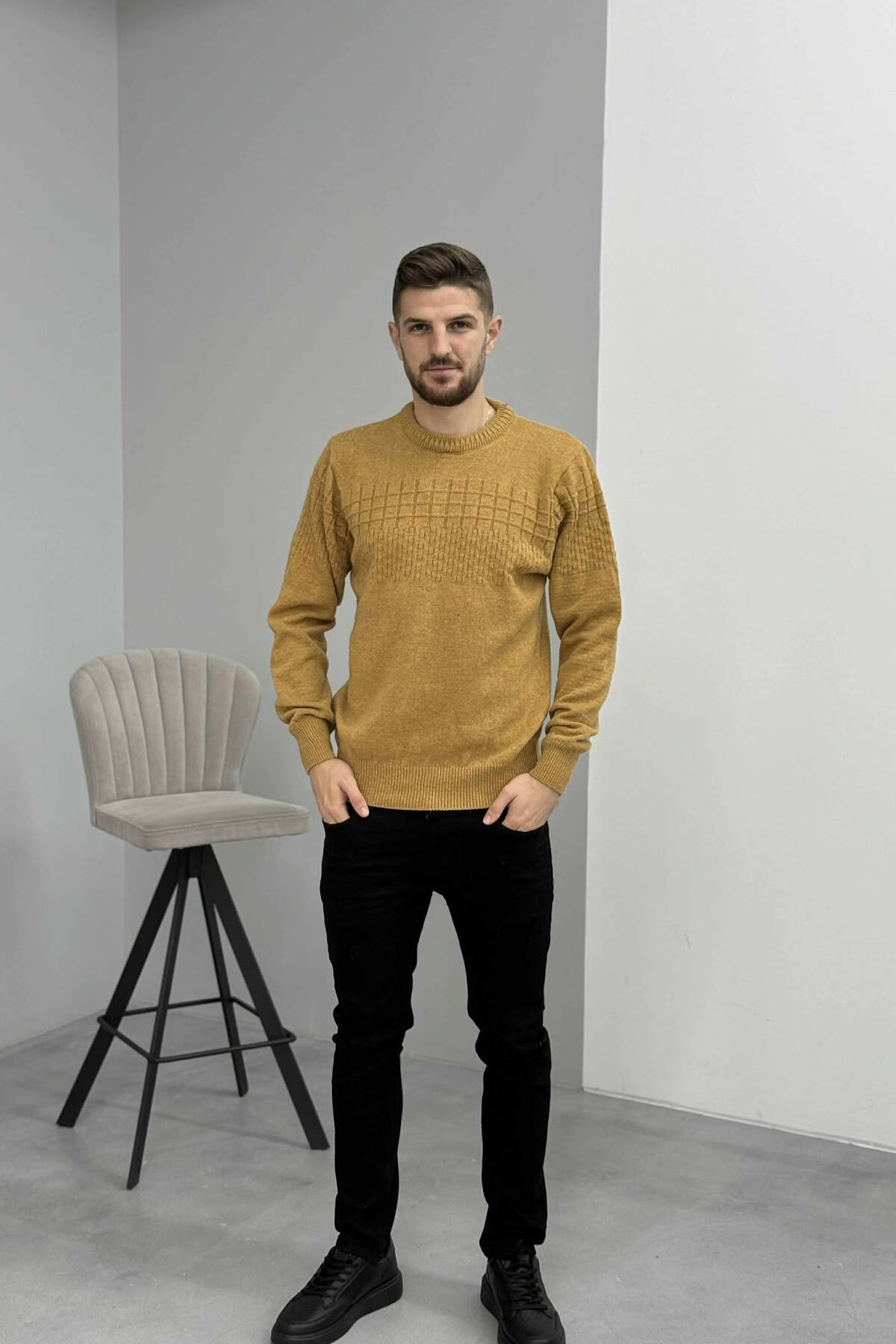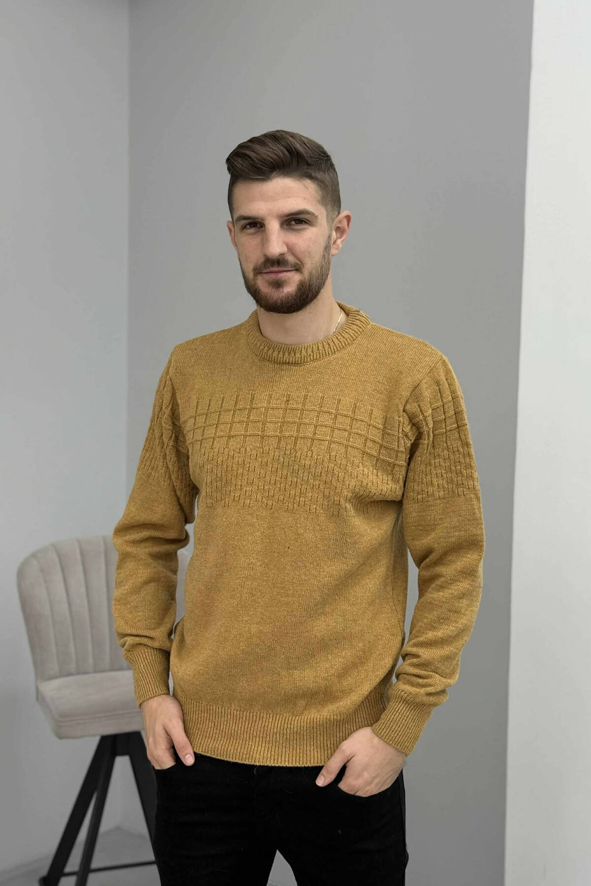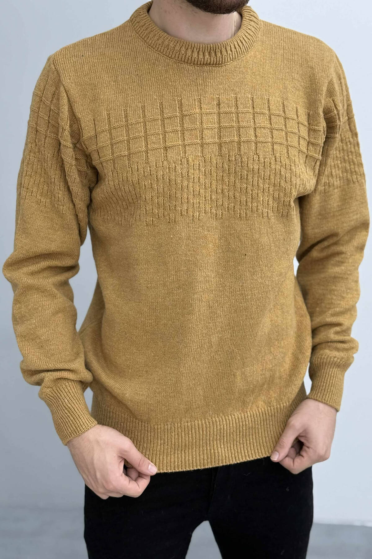 ONE COLOR SIMPLE DESIGN MEN SWEATER MUSTARD/MUSTARDE