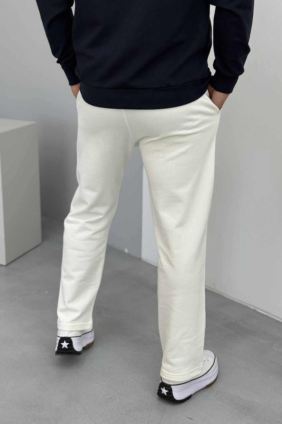 ONE COLOR SIMPLE ELASTIC WAIST MEN SWEATPANTS CREAM/KREM