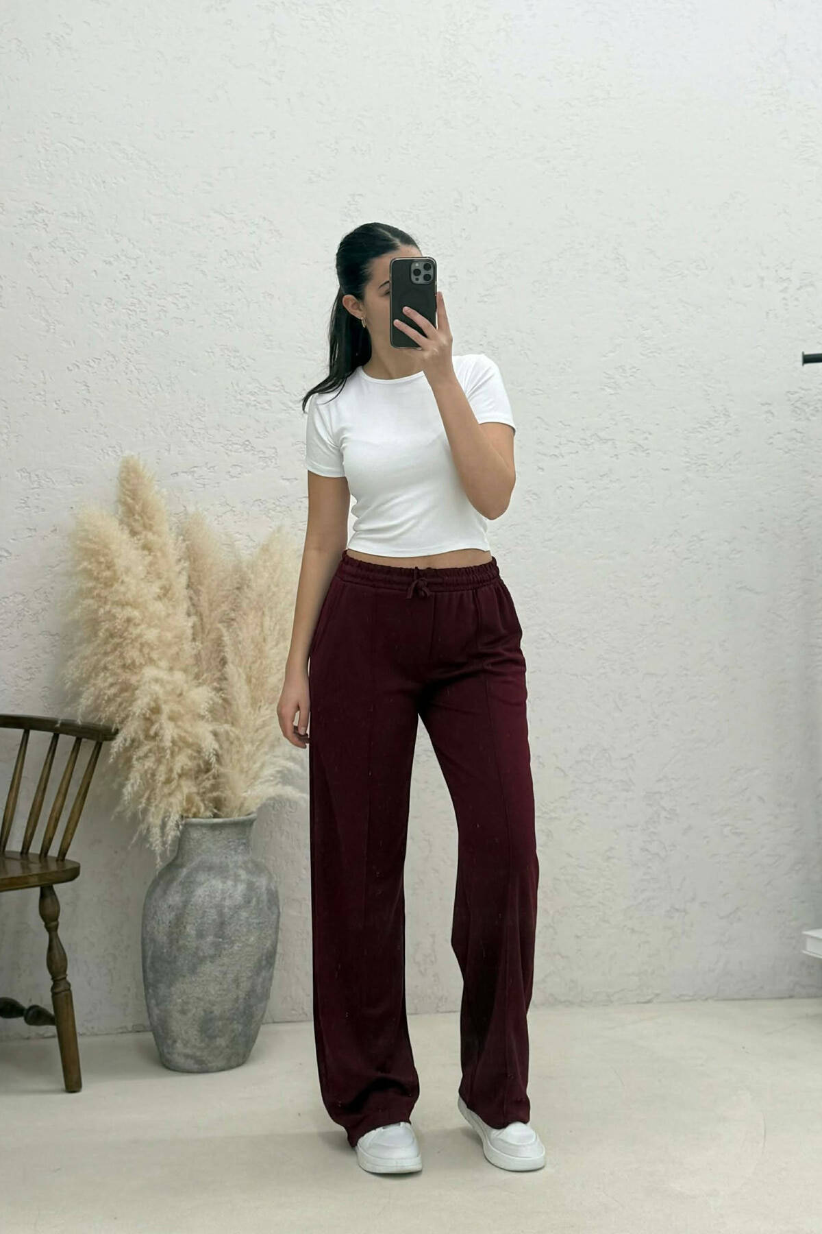 ONE COLOR SIMPLE ELASTIC WAIST WOMEN SWEATPANTS BURGUNDY/VISHNJE