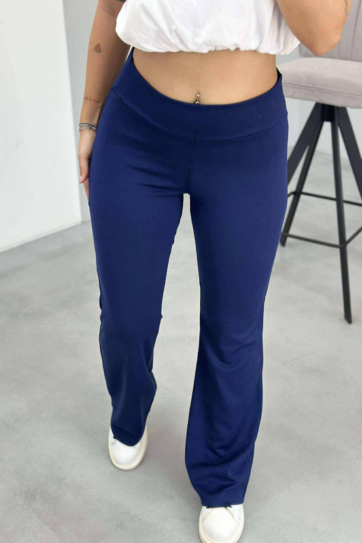 ONE COLOR SIMPLE ELASTIC WOMEN SWEATPANTS BLUE/BLU