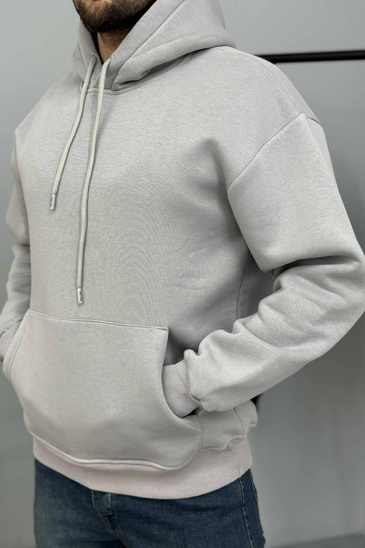 ONE COLOR SIMPLE FLUFFY MEN HOODIE GREY/GRI