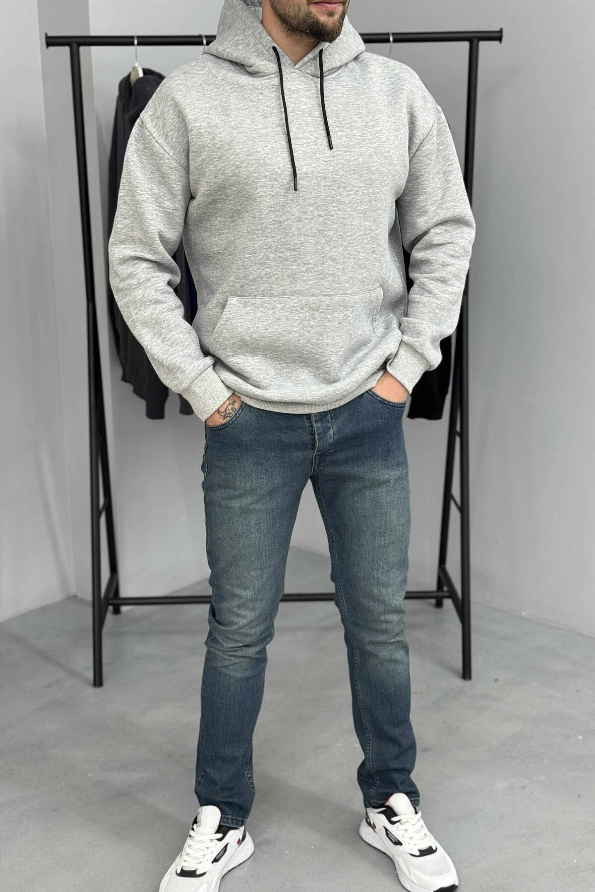 SIMPLE DESIGN ONE COLOR MEN HOODIE GREY/GRI