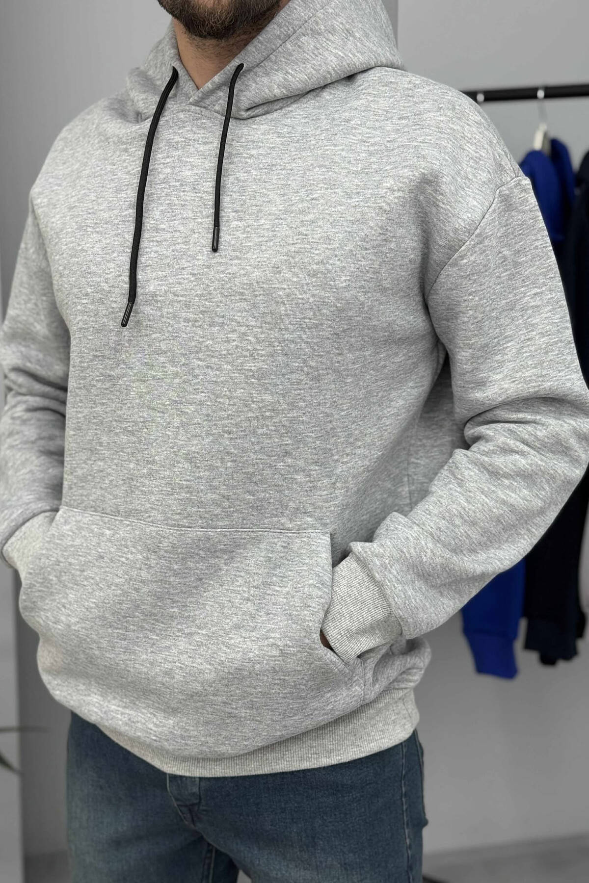 ONE COLOR SIMPLE FLUFFY MEN HOODIE LIGHT GREY/GZ