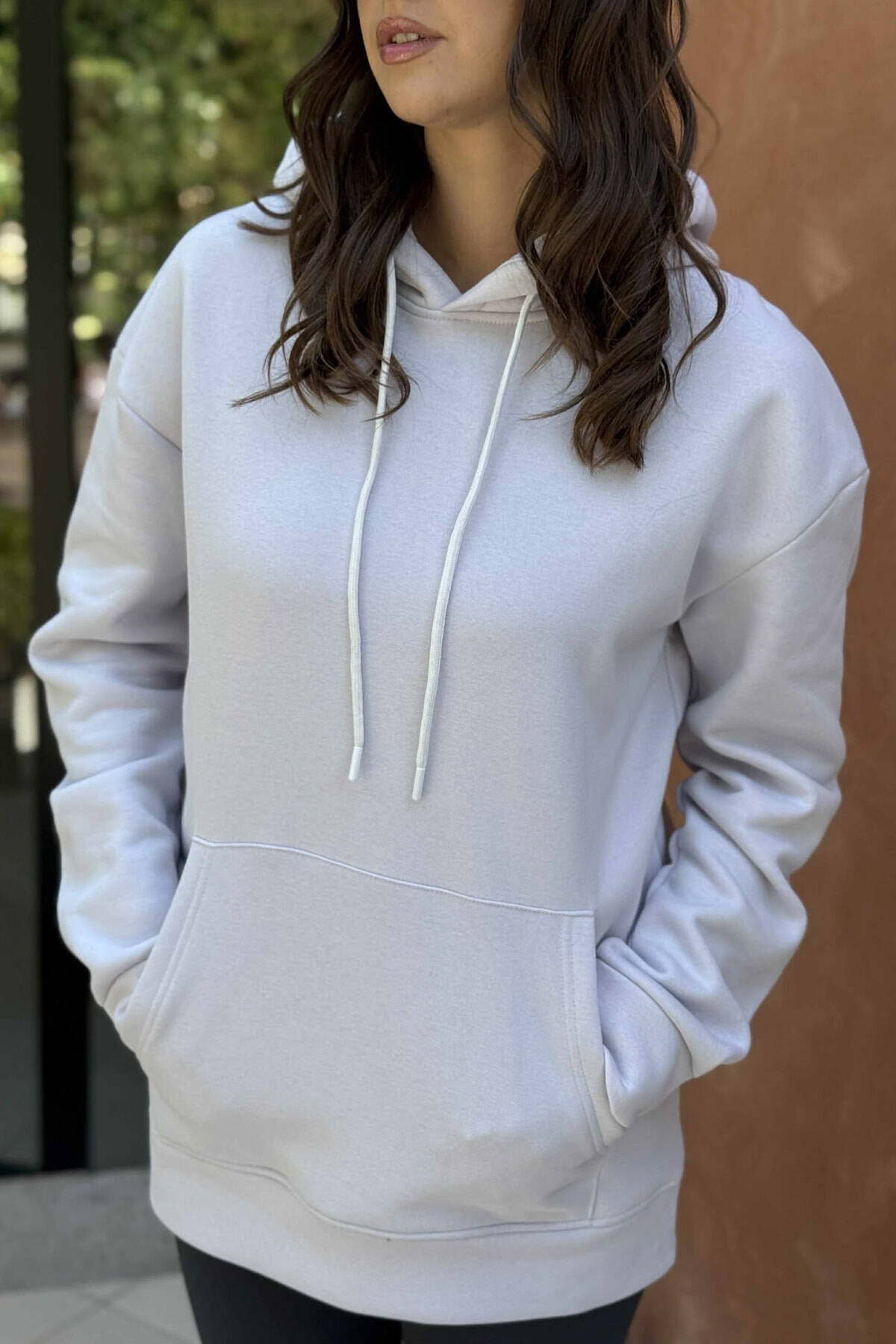 FLUFFY SIMPLE ONE COLOR WOMEN HOODIE LIGHT GREY/GZ
