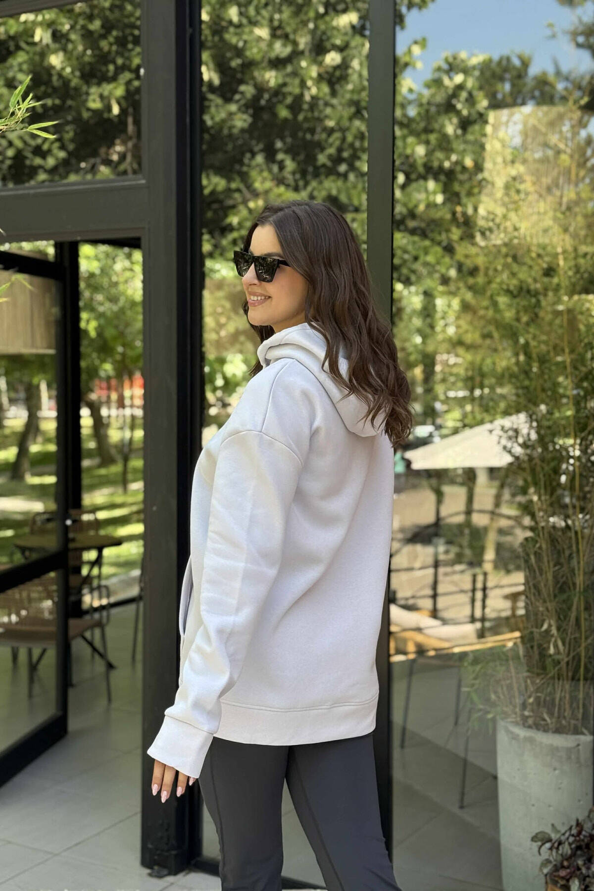 FLUFFY BACK DESIGN WOMEN HOODIE CREAM/KREM
