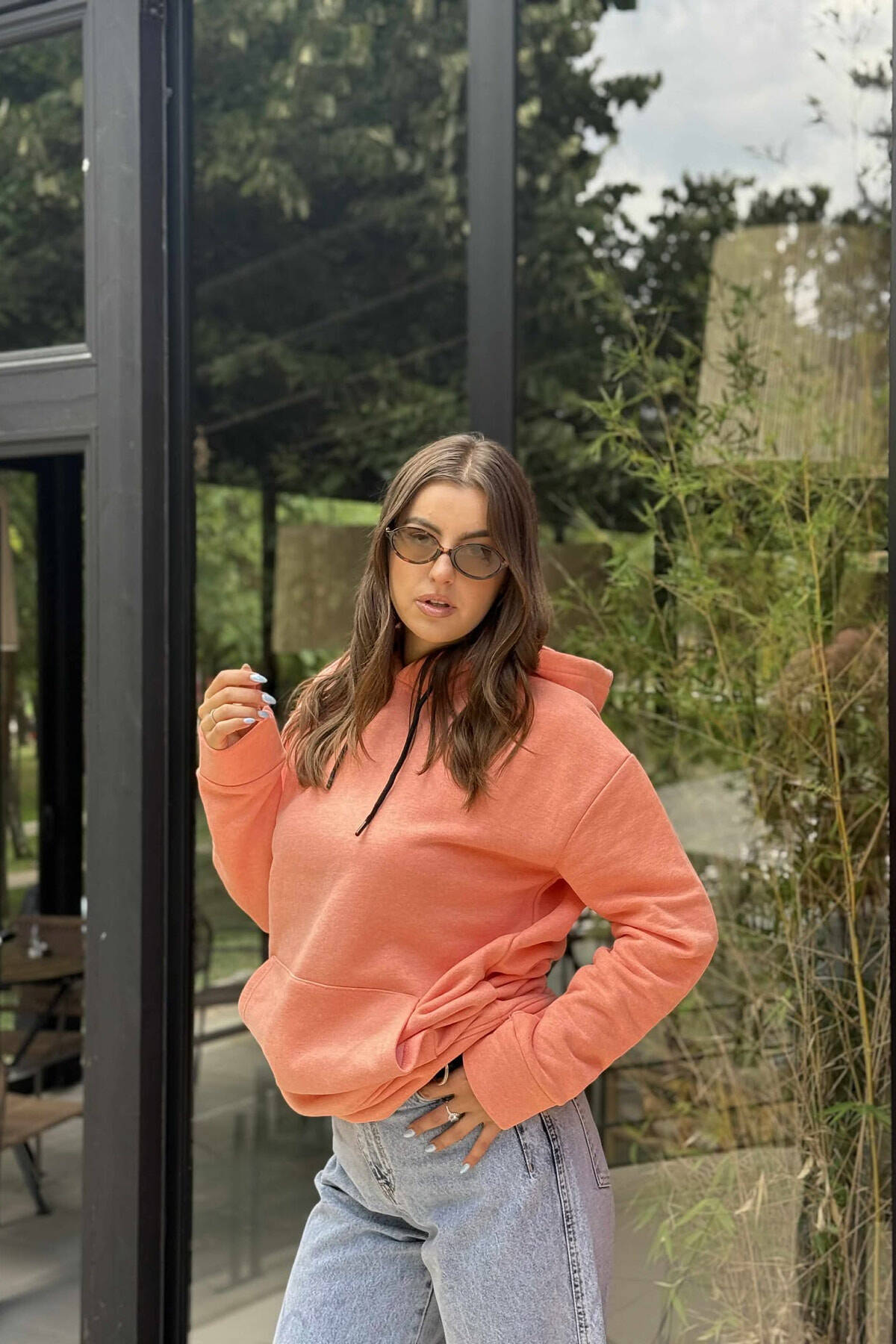 ONE COLOR SIMPLE FLUFFY WOMEN HOODIE SALMON/SALMON
